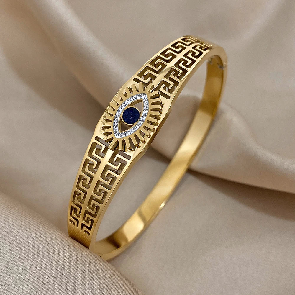 Vintage Evil Eye Bracelet Bangle For Women Stainless Steel Gold Plated Cuff Bracelet Brand Designer Tibetan Mati Greek Wristband