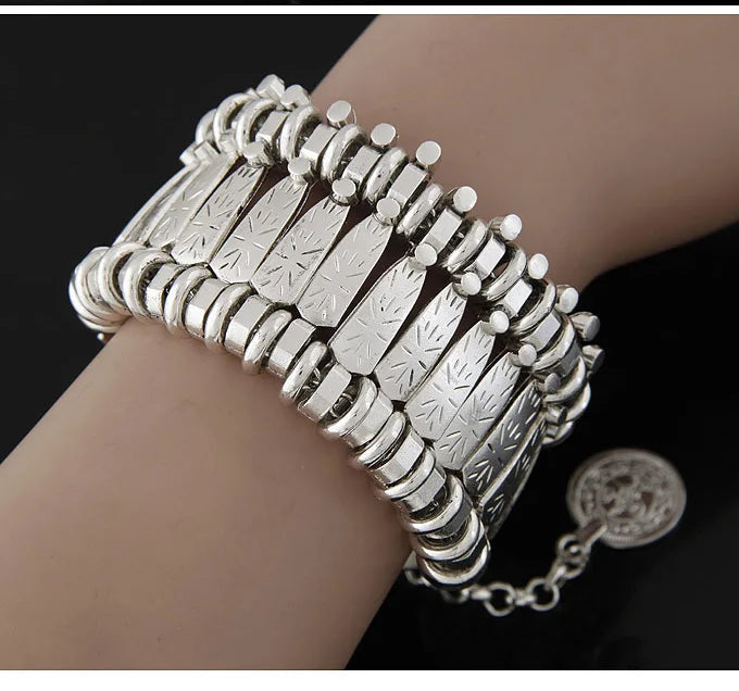 Gypsy Bohemian Coin Bracelets for Women Metal Vintage Flower Statement Bracelets Festival Turkish Beach Jewelry Tribal Ethnic