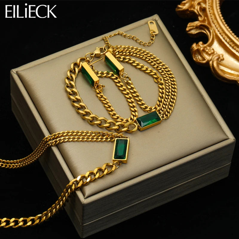 Turn heads at every event with the Hushhill.uk Green Crystal Jewelry Set, a luxurious 3-piece...
