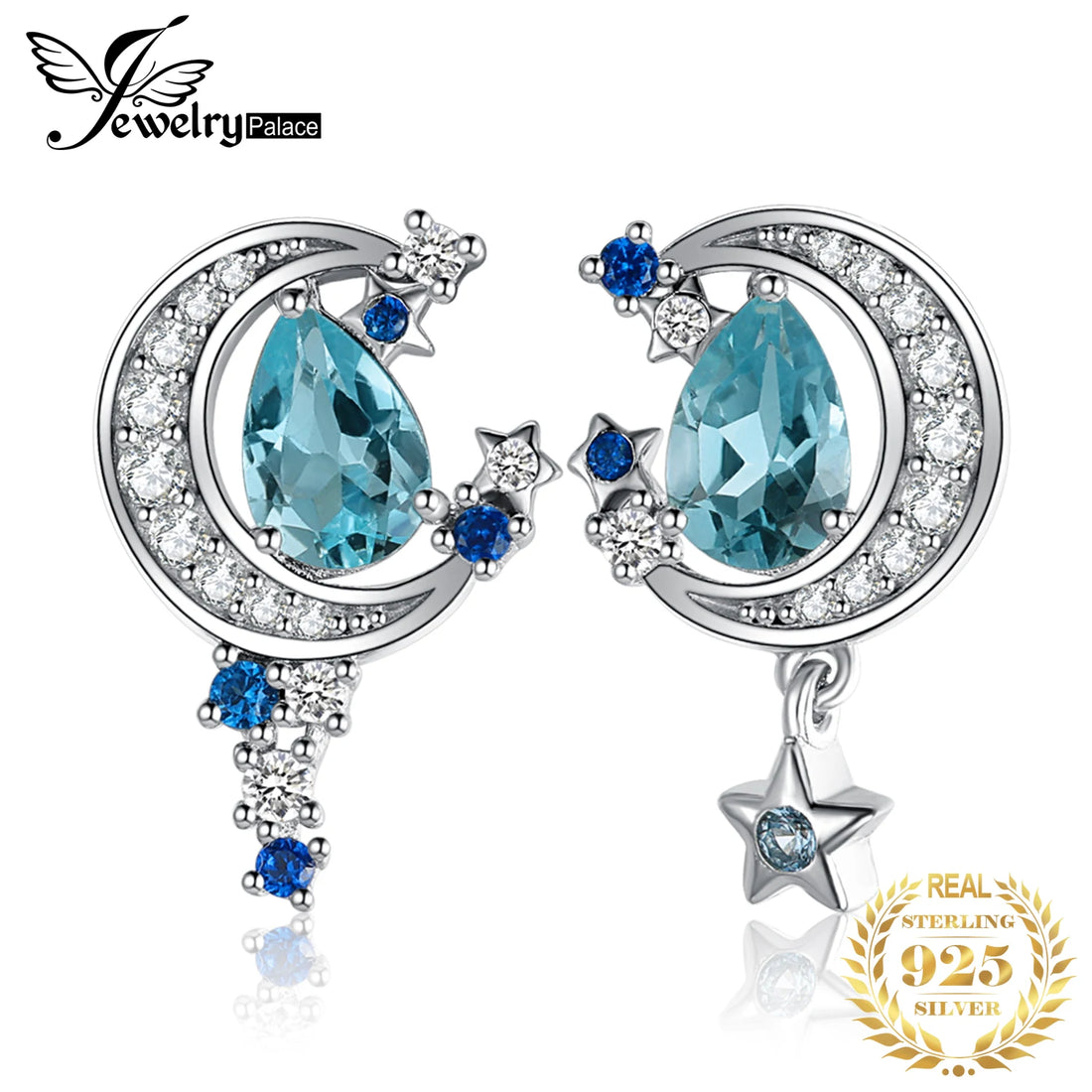 Moon Star Blue Topaz 925 Silver Stud Earrings