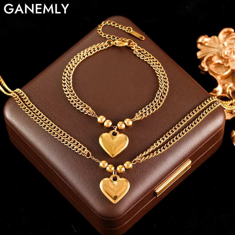 Heart Charm Necklace & Bracelet Set for Women