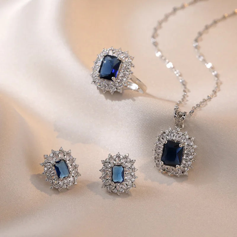 Royal Blue Zircon Bridal Jewellery Set for Women