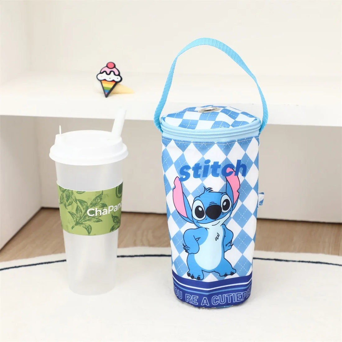 Cute Stitch Lingge Printed Portable Insulated Cooler Bag Tea Tote Bag Cartoon Eco-Friendly Carrying Insulated Cup Cover Handbag