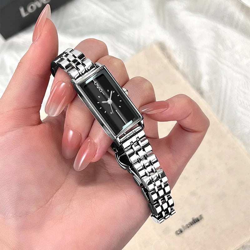 GEDI Vintage Luxury Rectangular Stainless Steel Strap Watch for Women - Minimalist Retro Stylish Quartz Wristwatch
