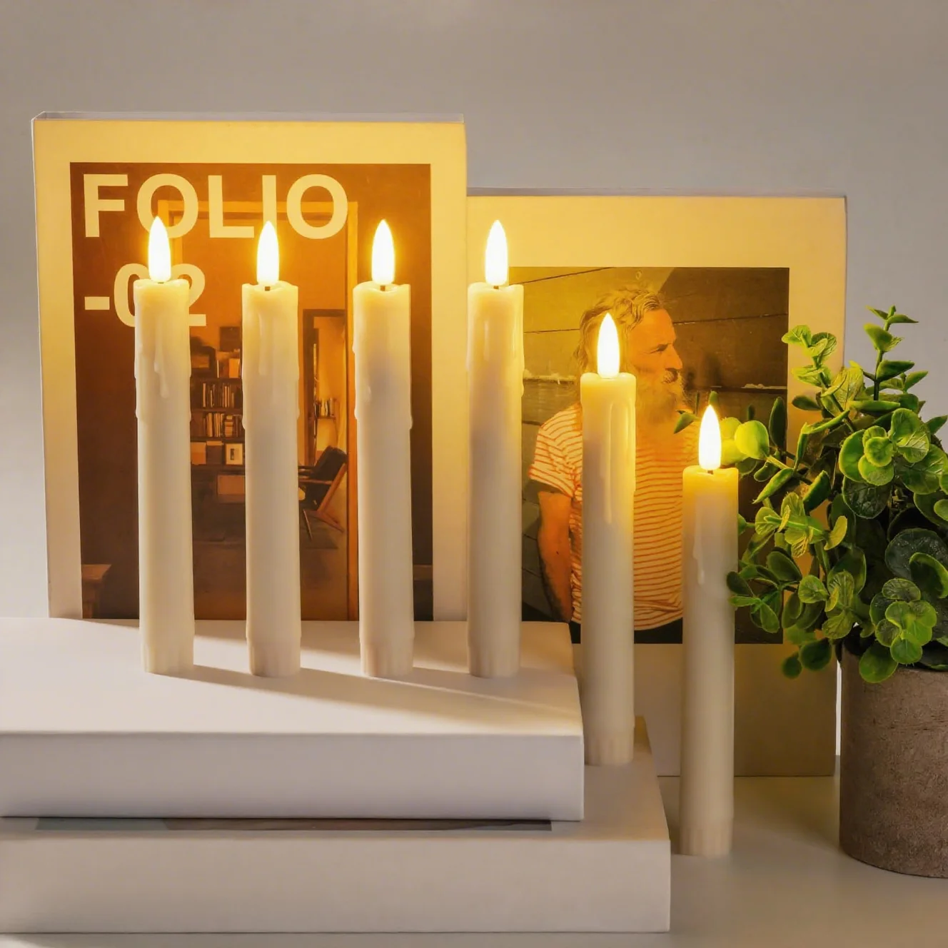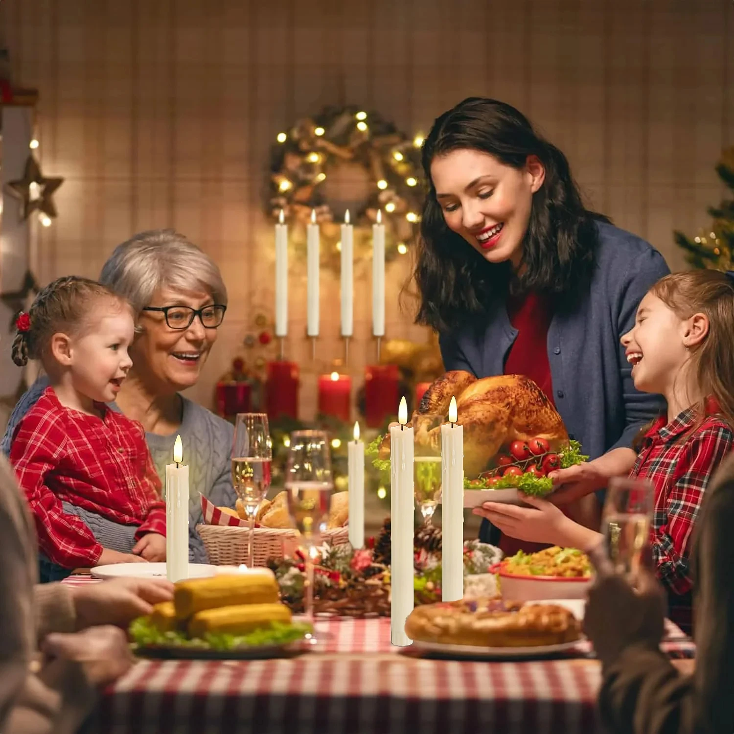 Control all candles with one remote. Set automatic timers (2/4/6/8 hours) and adjust brightness across 4 levels for the perfect atmosphere.12 pieces of the remote-controlled version are equipped with one remote control.