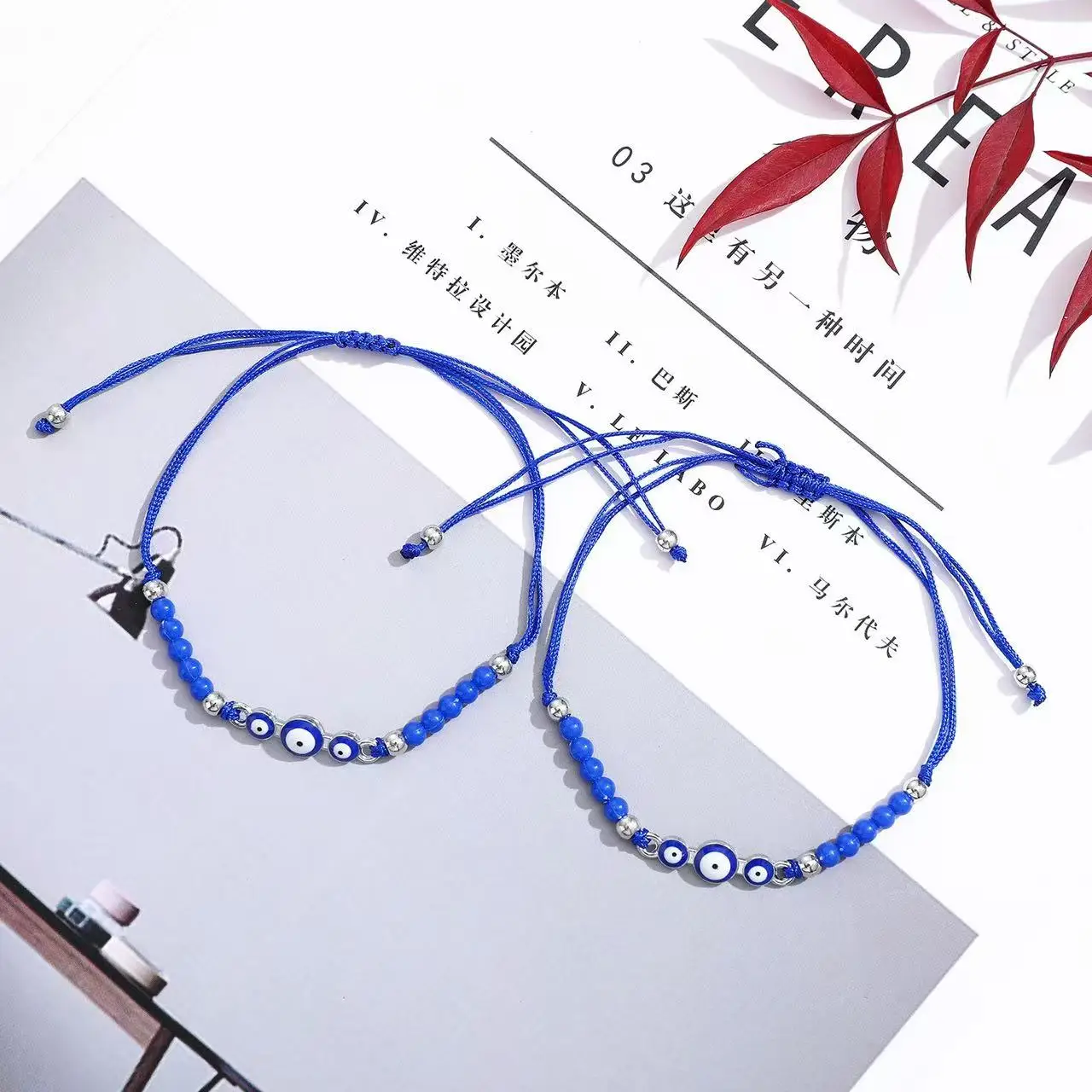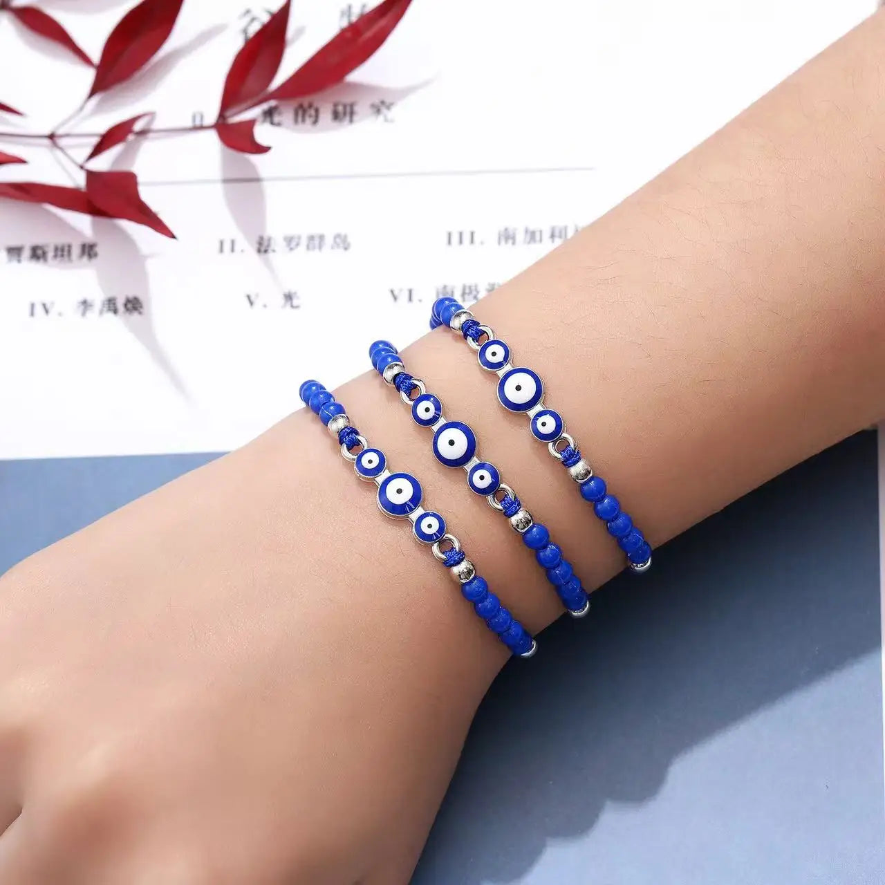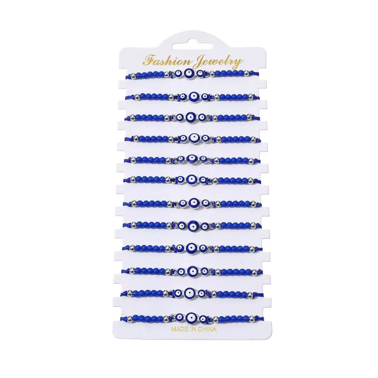 12-piece blue crystal beaded woven Devil's Eye bracelet, glass eye beads, fashionable adjustable bracelet for both men and women