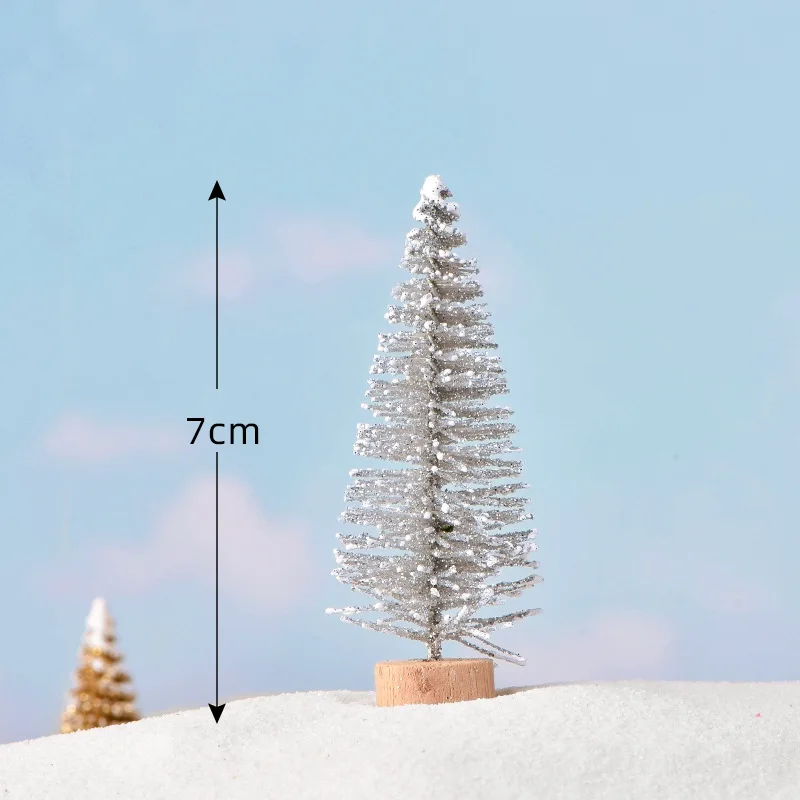 12Pcs DIY Mini Christmas Tree Sisal Silk Cedar Desktop Decoration Small Christmas Tree 2025 Xmas New Year Decor Micro-landscape
