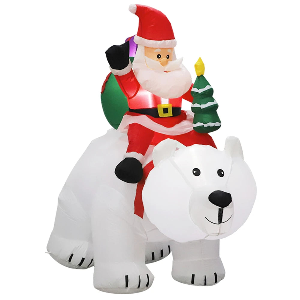 2.1M Inflatable Christmas Claus Riding Shake Head Bear And 1.2m Santa Claus Built-in LED Light Courtyard Garden Xmas Decorati