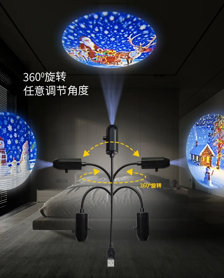 2025 Christmas Day LED Night Light USB Flexible Projector Light Holidays Party led Atmosphere Lights Starry Moon Ambient Lamp