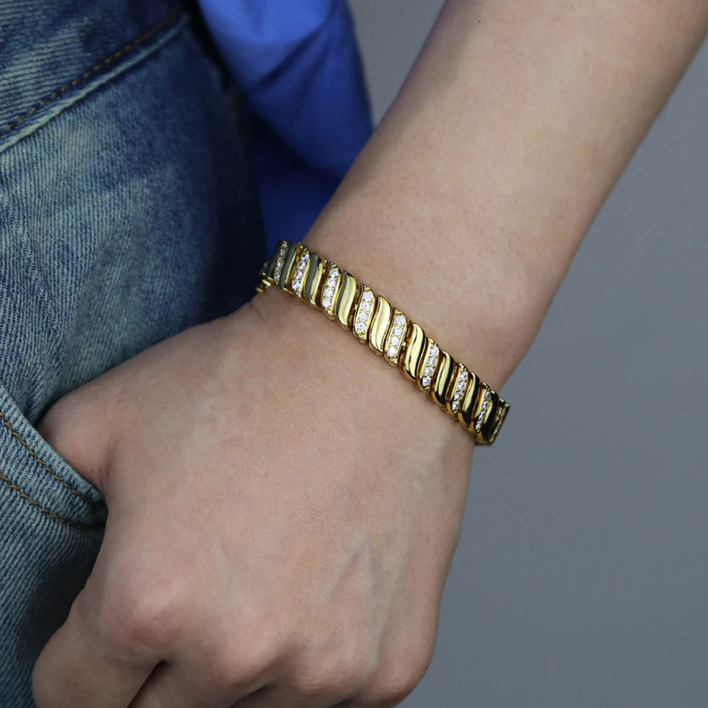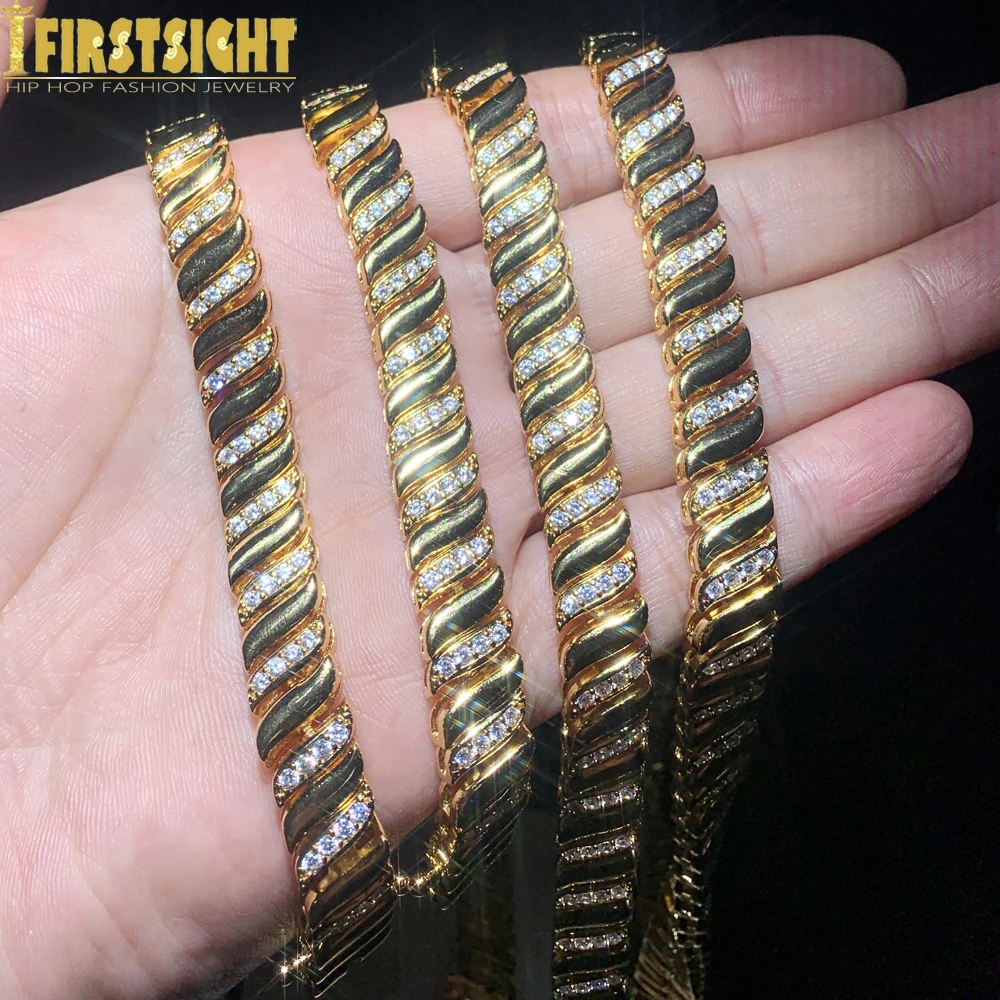 2025 New Gold Color Herringbone Snake Chain Bracelet Necklace 10mm CZ Stones Choker Hop Hip Rapper Fashion Women Jewelry Set