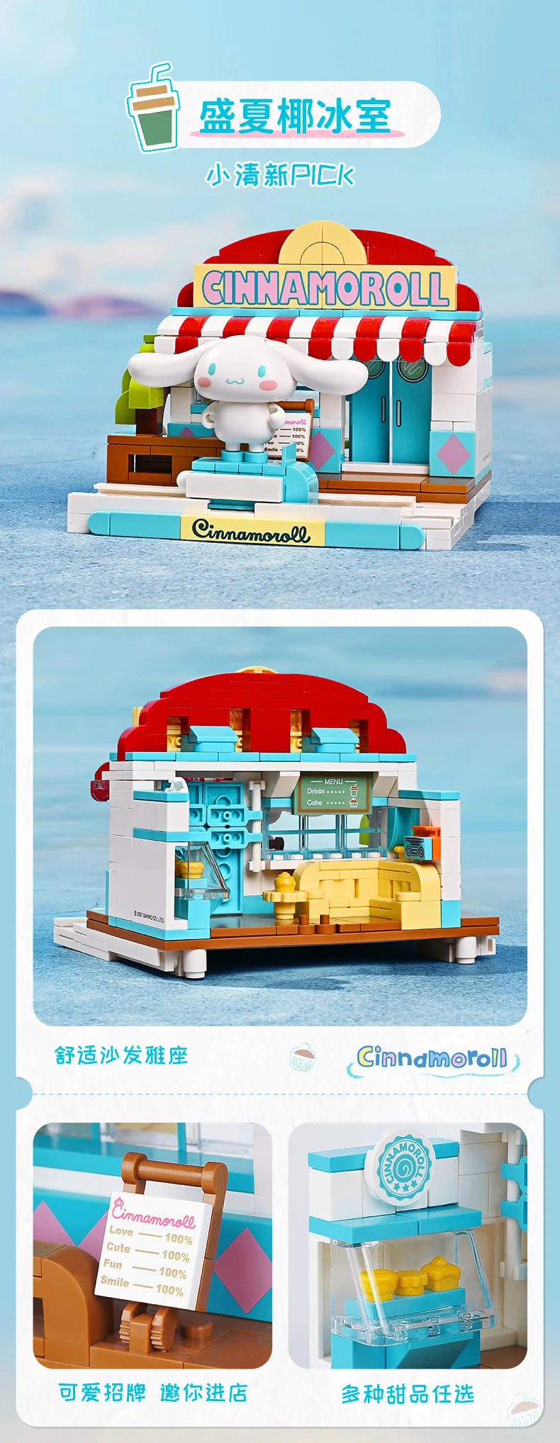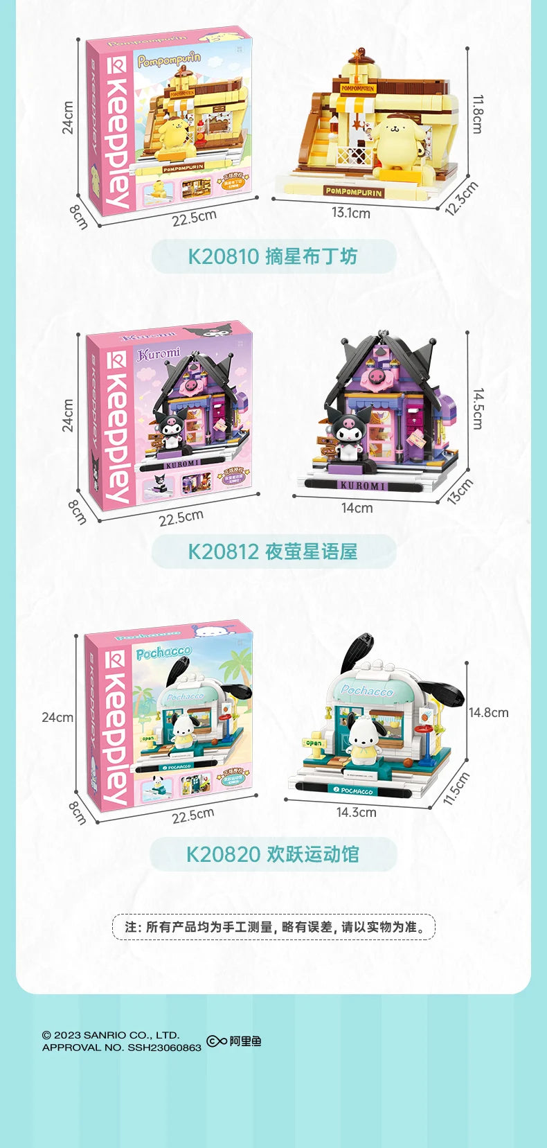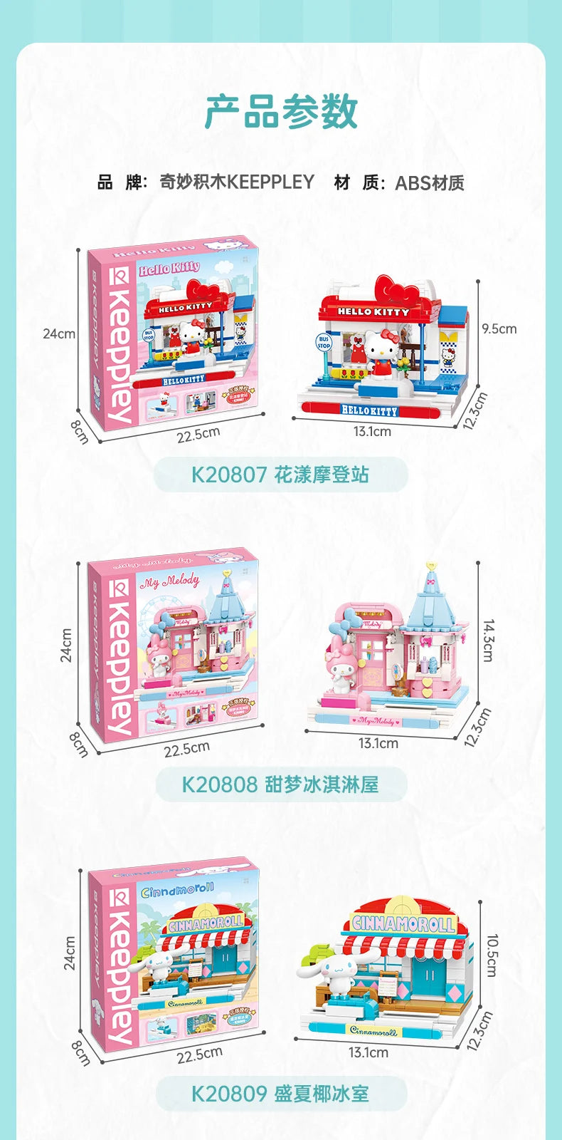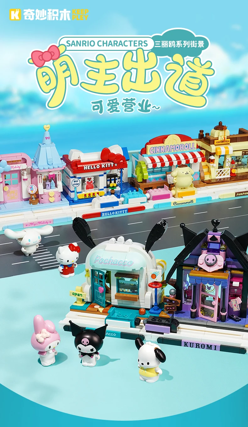 2025 New Keeppley Sanrio Street View Construction Building Blocks Kuromi Hello Kitty Collection Assembly Puzzle Children's Gift