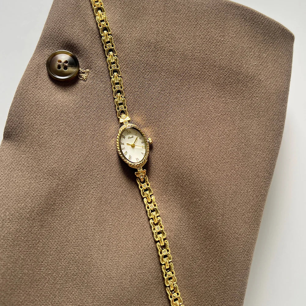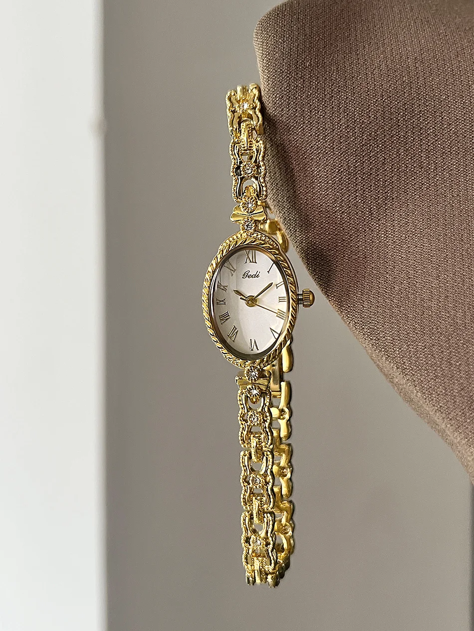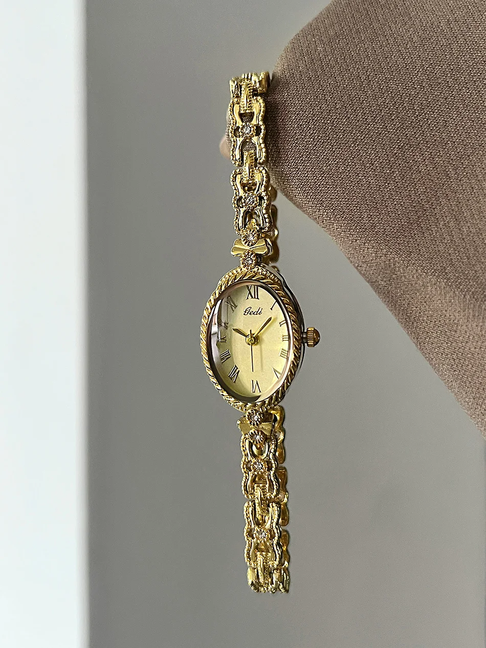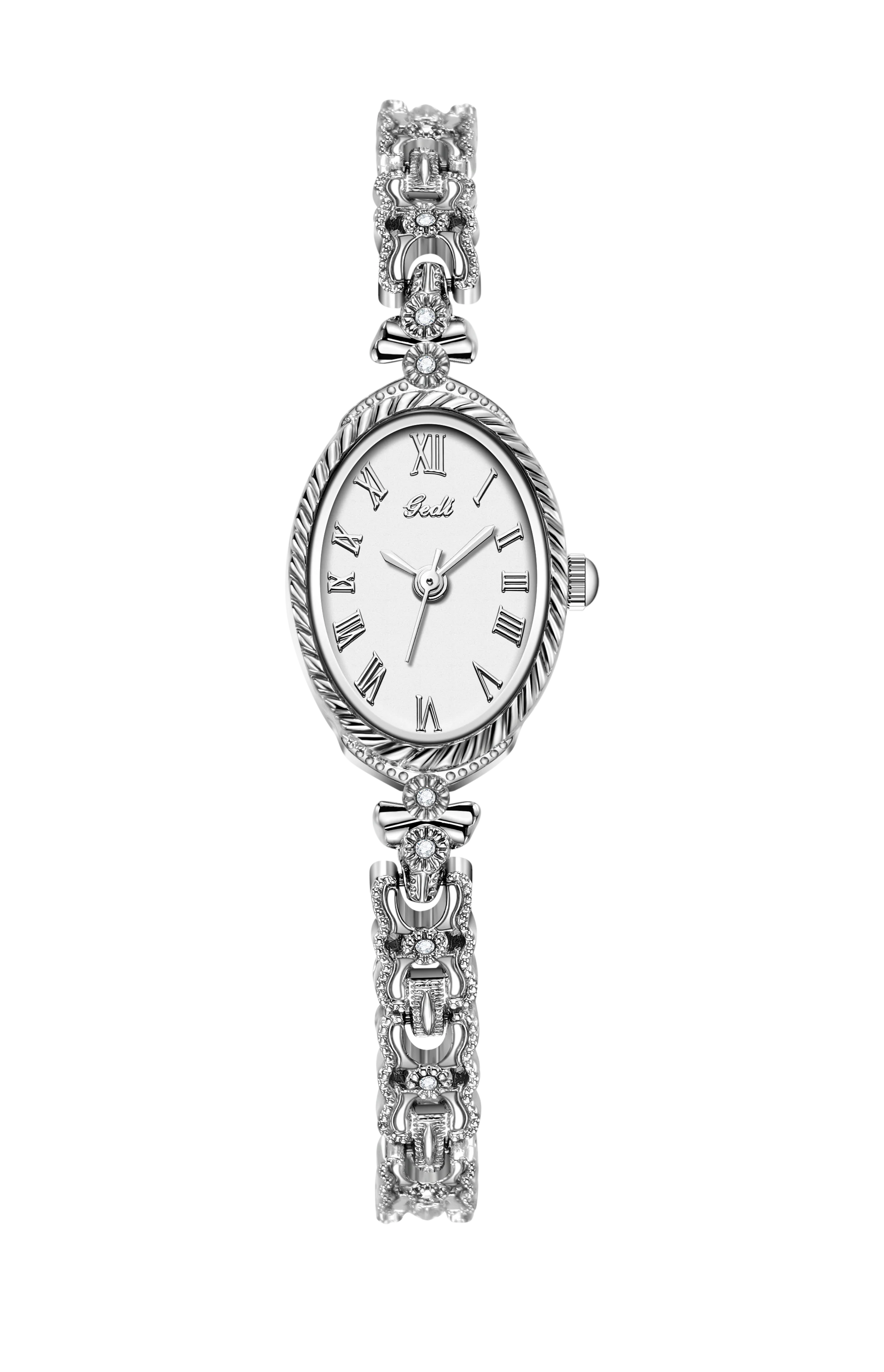 2025 NEW Vintage Silver Women's Watches GEDI Roman Numeral Display Oval Dial Woman's Quartz Wristwatch Clock Gift Accessories