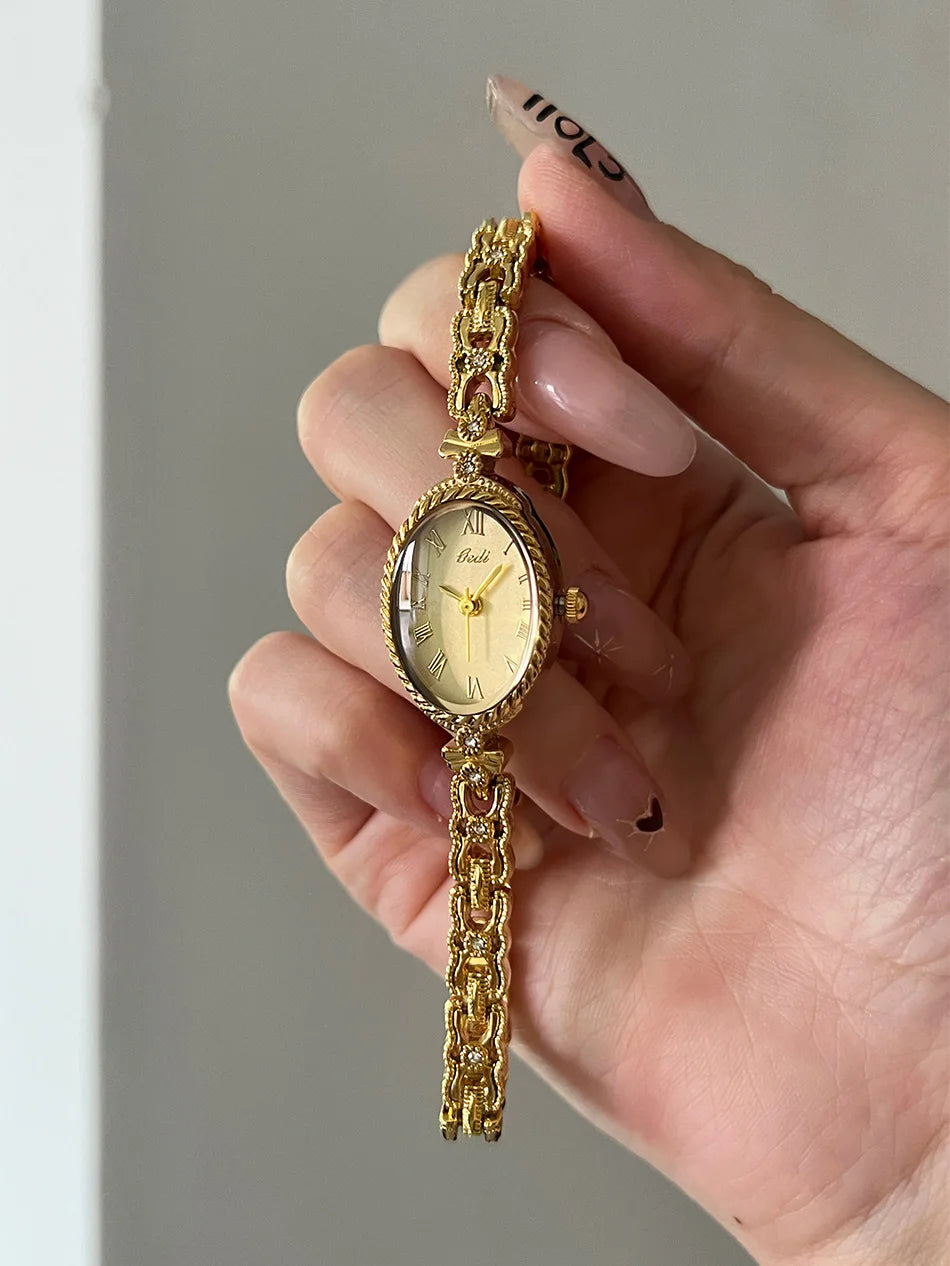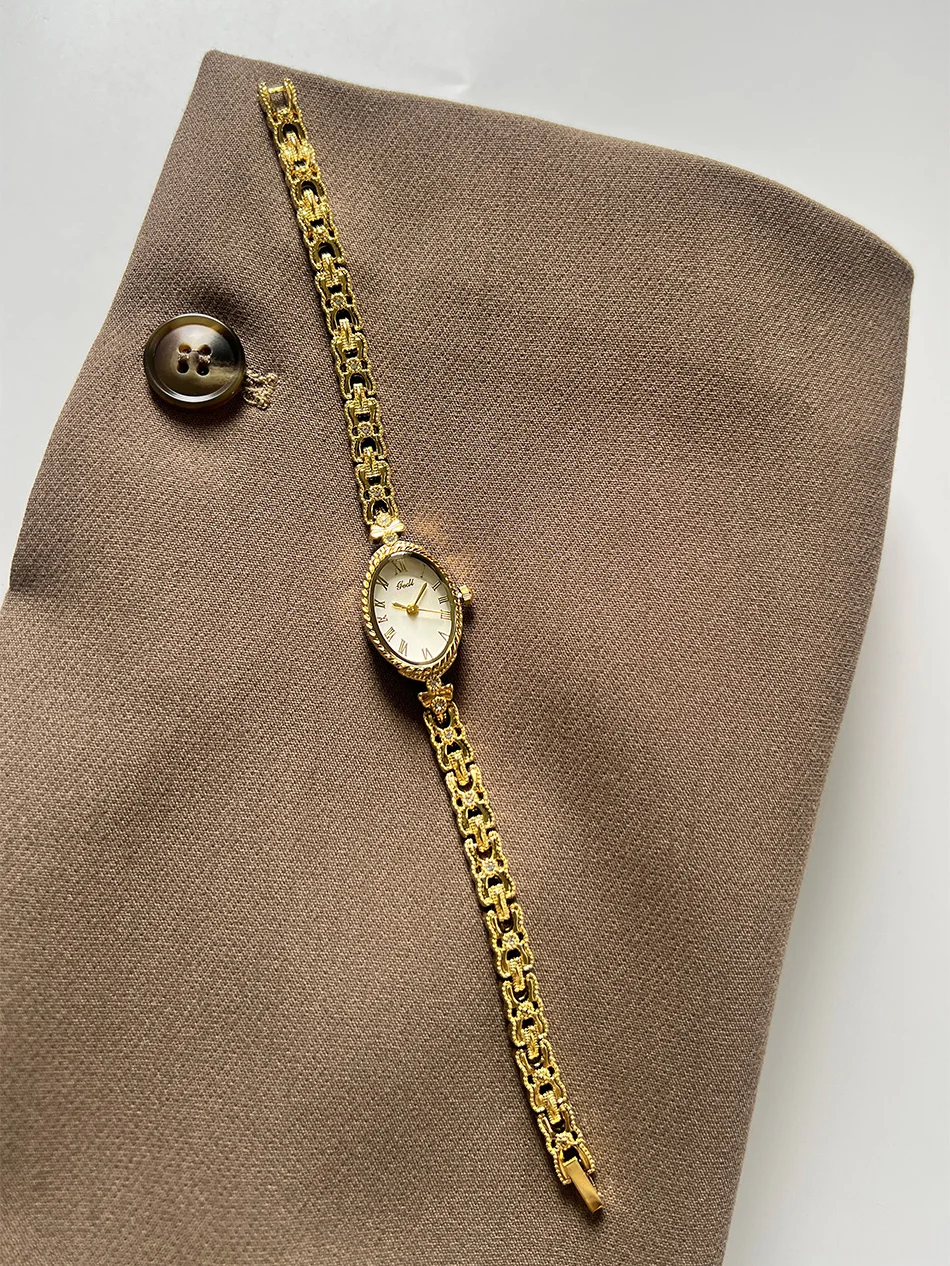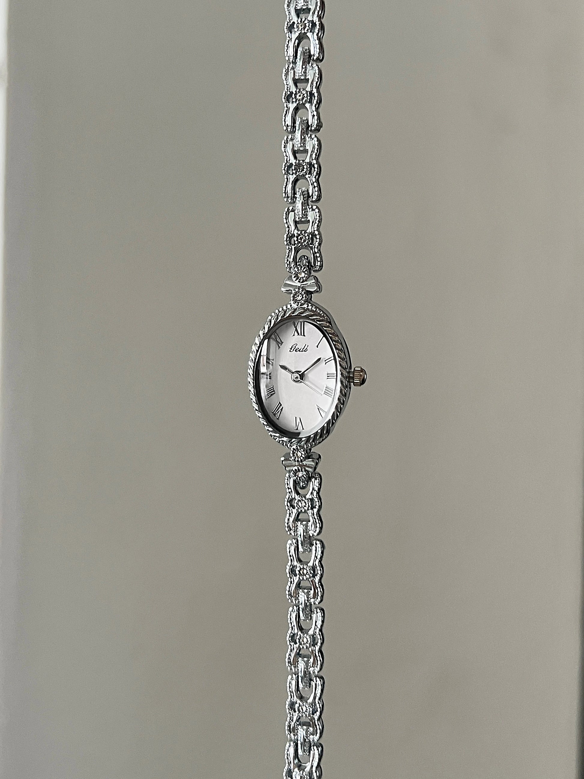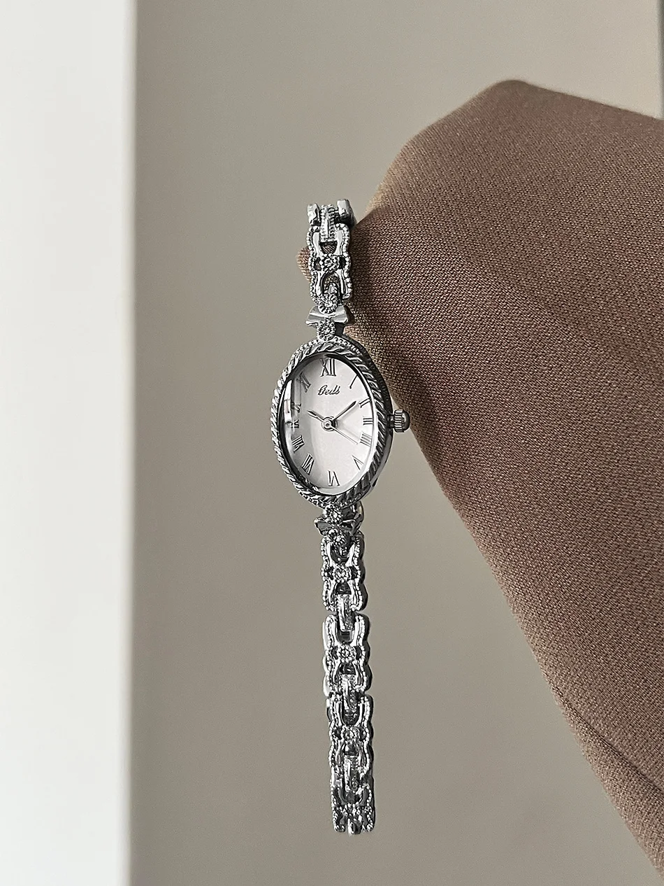 2025 NEW Vintage Silver Women's Watches GEDI Roman Numeral Display Oval Dial Woman's Quartz Wristwatch Clock Gift Accessories