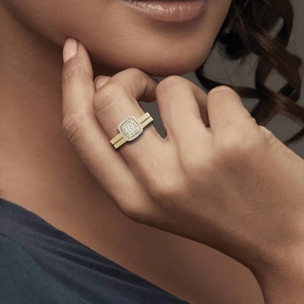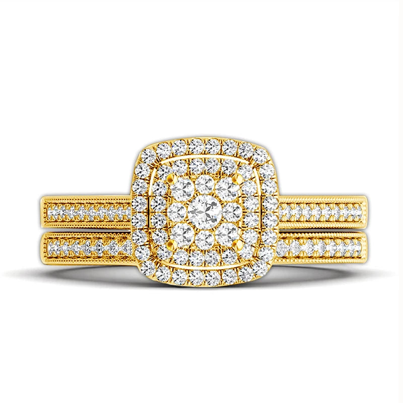 2PCS Yellow Gold Moissanite Engagement Rings set For Women 100% Real Pass Diamond Tester Wedding Band Jewelry Lover Couple Gifts