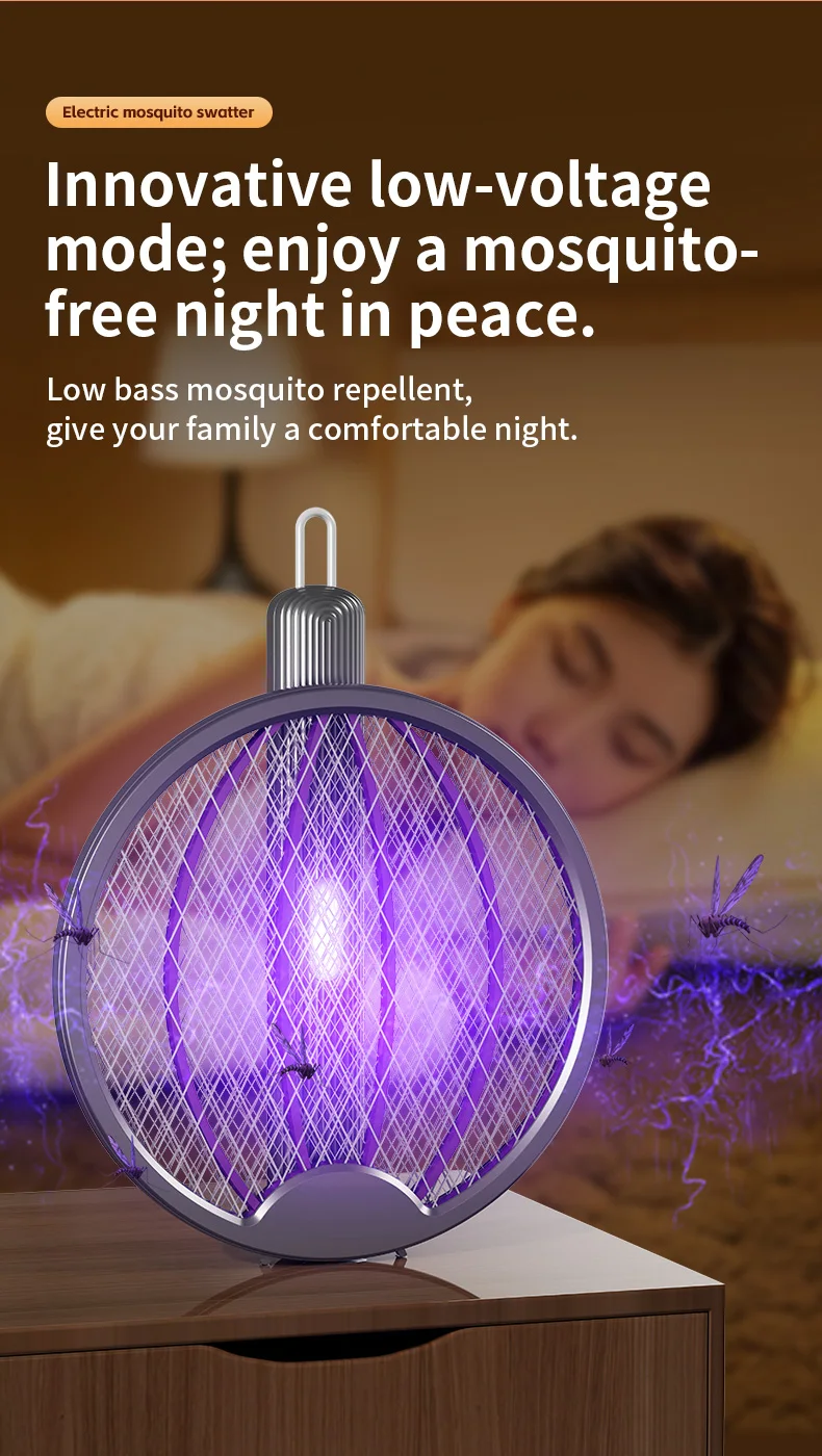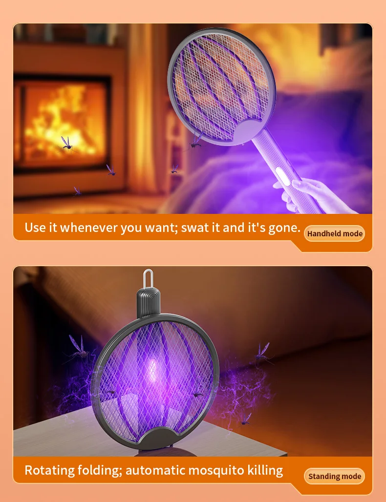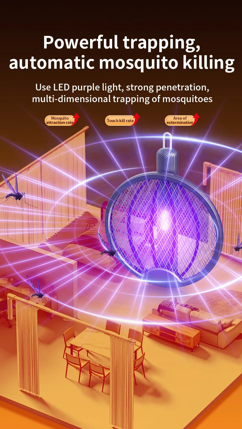 3 in 1 Foldable USB Rechargeable 3000V Mosquito Fly Swatter UV Trap LED Dual Switch Safe Grid 0° Wall Stick Bug Zapper