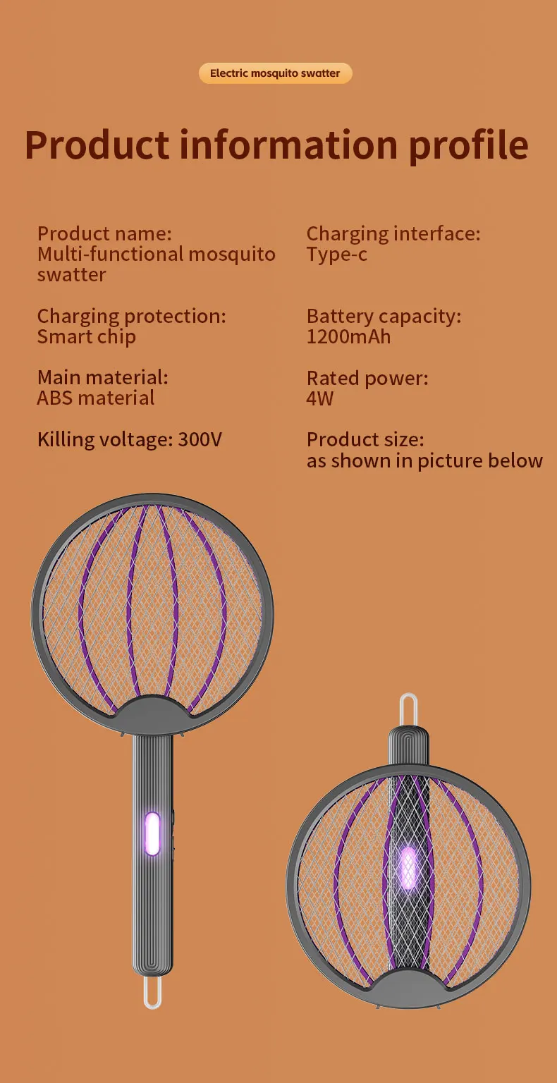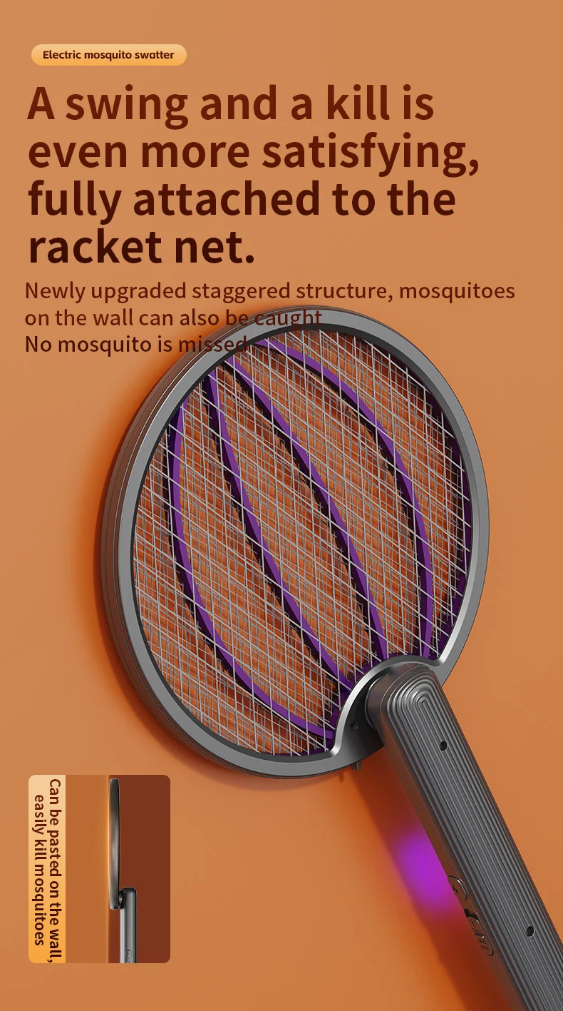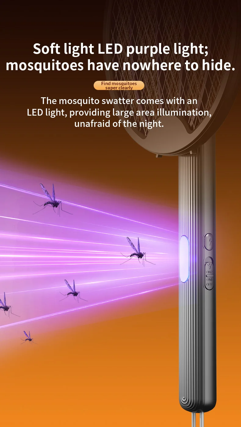 3 in 1 Foldable USB Rechargeable 3000V Mosquito Fly Swatter UV Trap LED Dual Switch Safe Grid 0° Wall Stick Bug Zapper