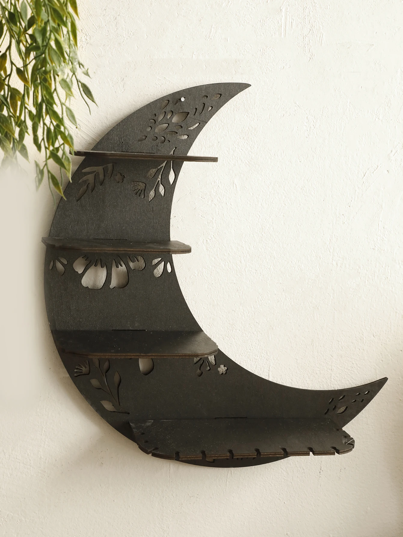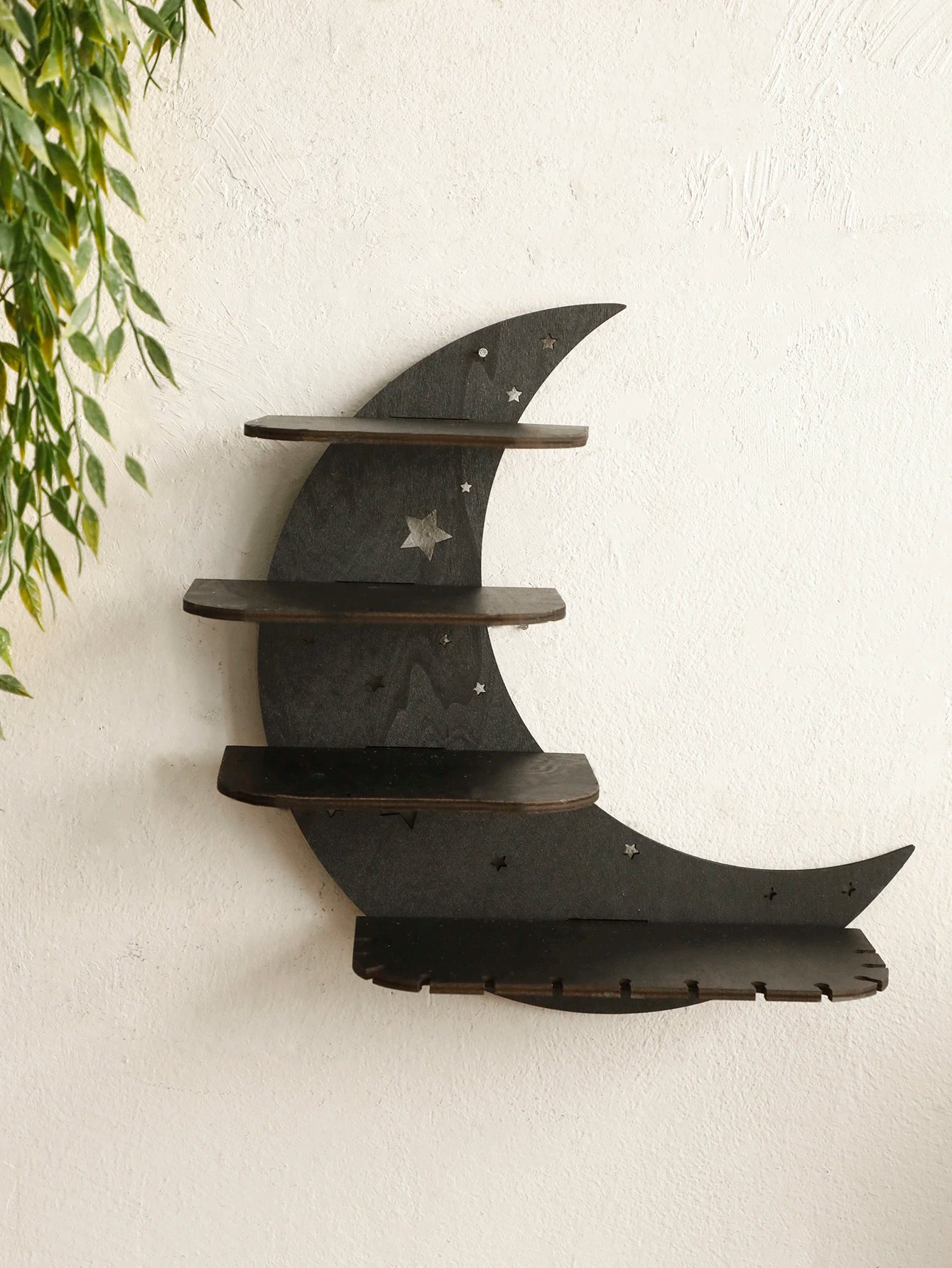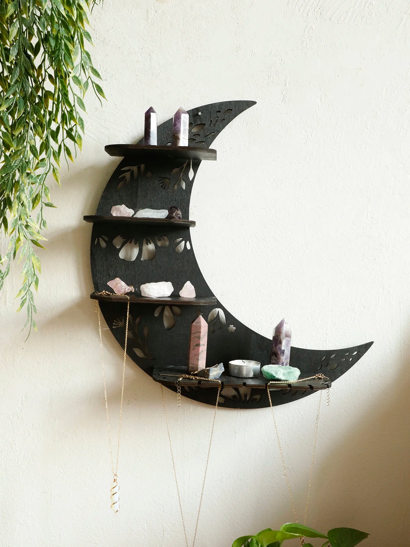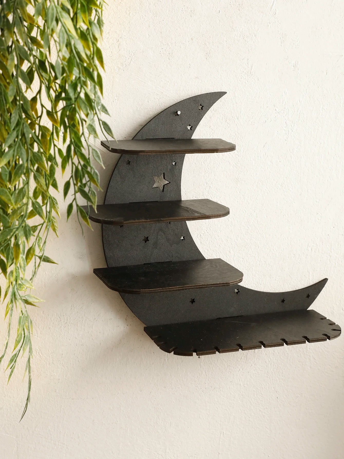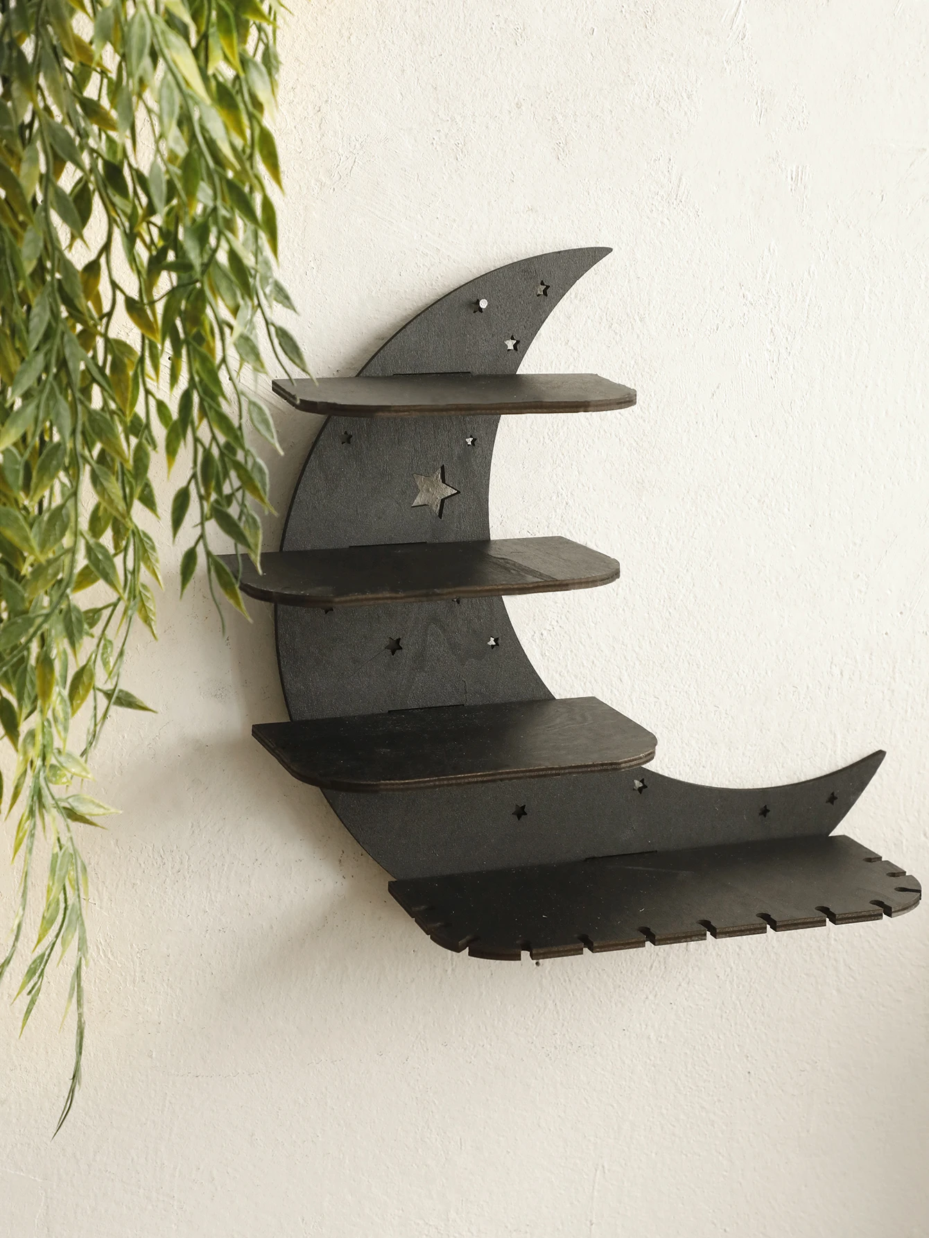 30/39cm Black Moon Wall Shelves 4-tier Wood Floating Wall Shelf Gothic Home Decor Crystal Shelf Display Ledge Essential Oil Rack