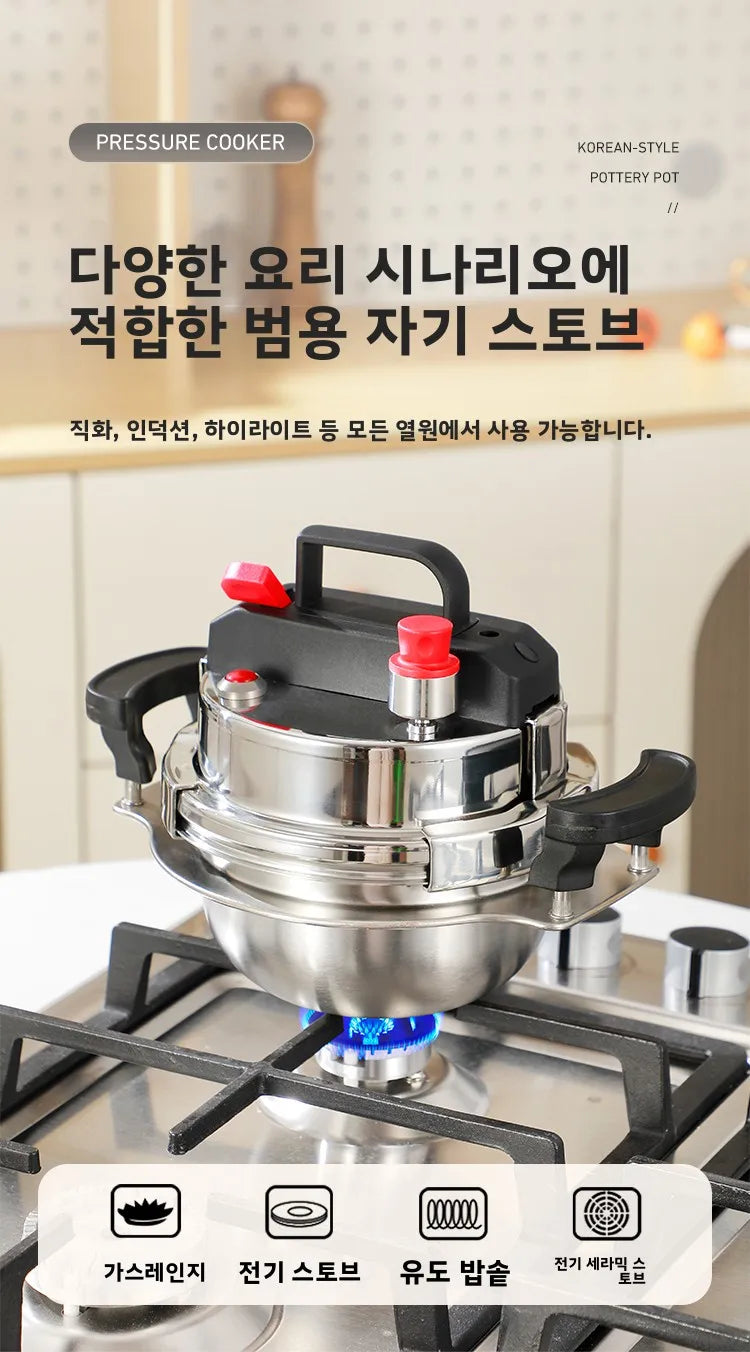 304 Stainless Steel Pressure Cooker, Includes Wooden Stand, Compatible with Gas Stoves, Suitable for Cooking Rice and Boiling Meat.