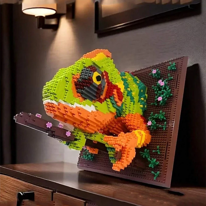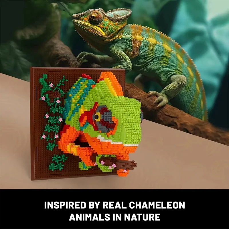 3D Animal Chameleon Building Blocks Lizard Mural Wall Stereoscopic Painting Model Assemble Bricks Home Decor Adults Kid Toy Gift