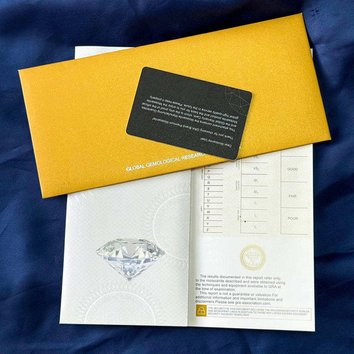 The ring is with gra certificate and black card.