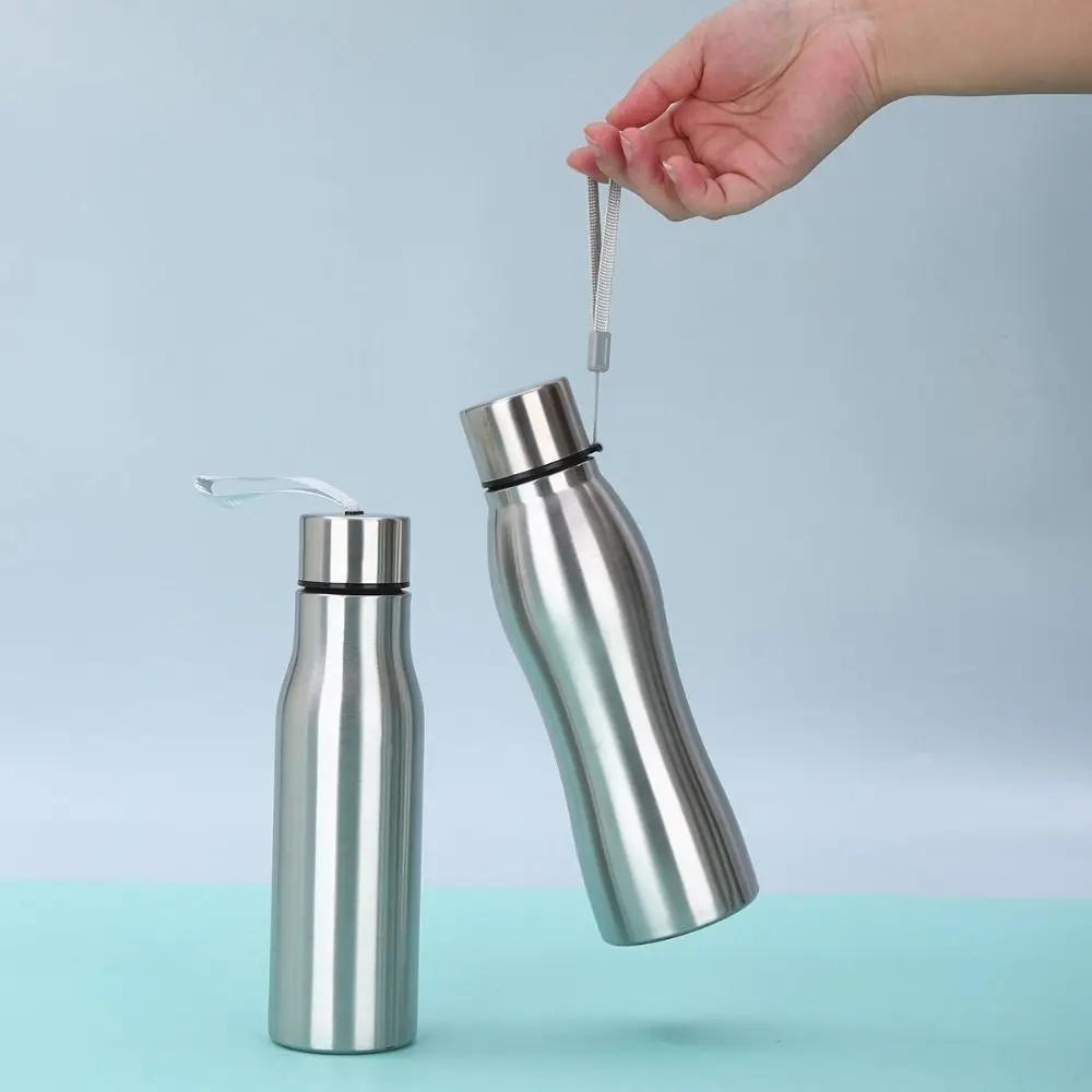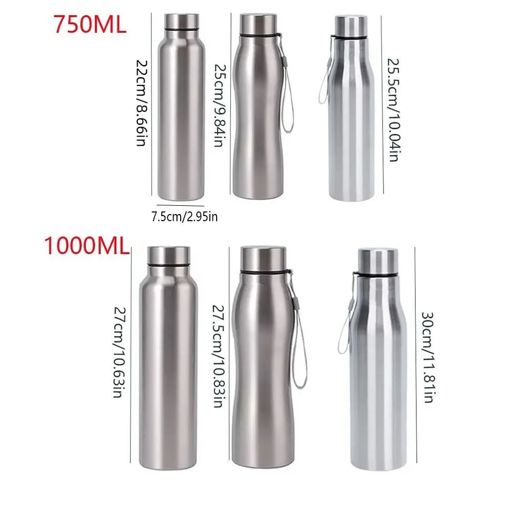 750ml/1000ml Sports Water Bottles Stainless Steel Single-layer Outdoor Drink Bottles Large Capacity with Lift Rope