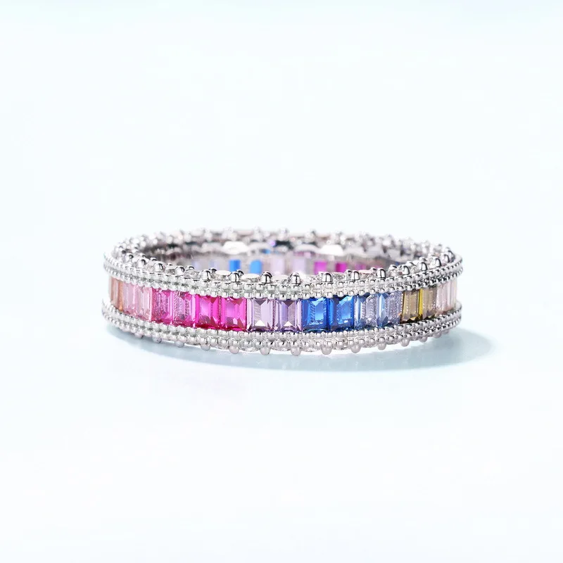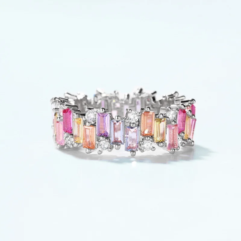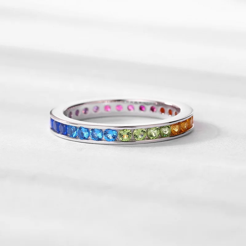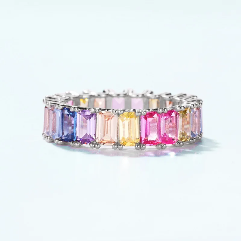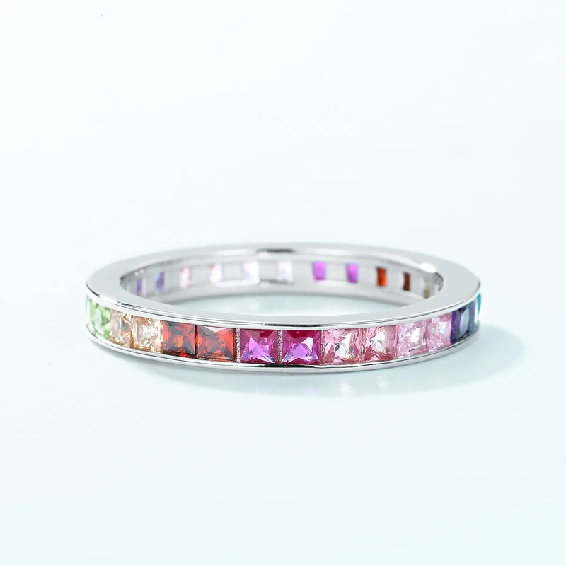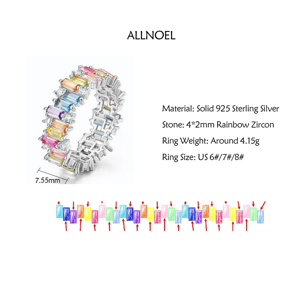 ALLNOEL Rainbow Band Ring for Woman Pure 925 Sterling Sliver 5A Zircon Eternity Fine Jewelry Colorful Engagement Birthday Gifts