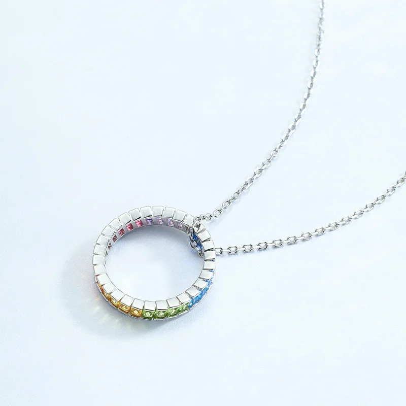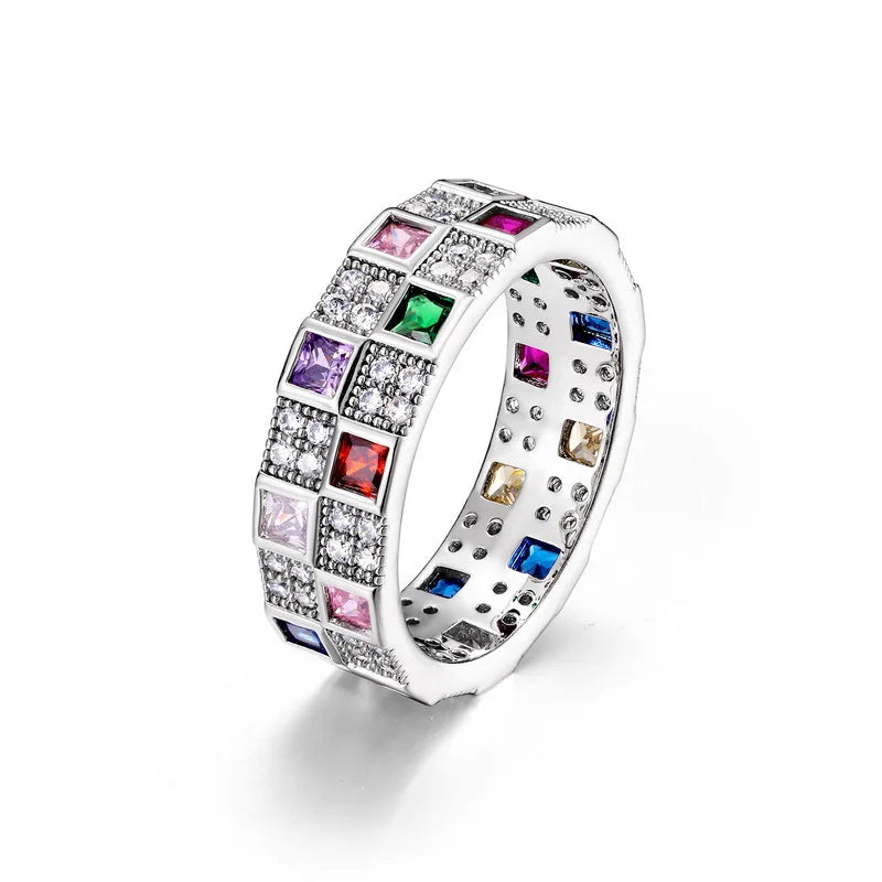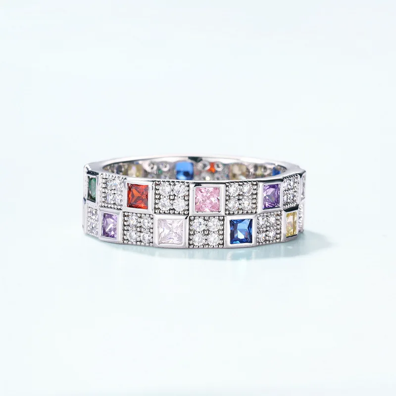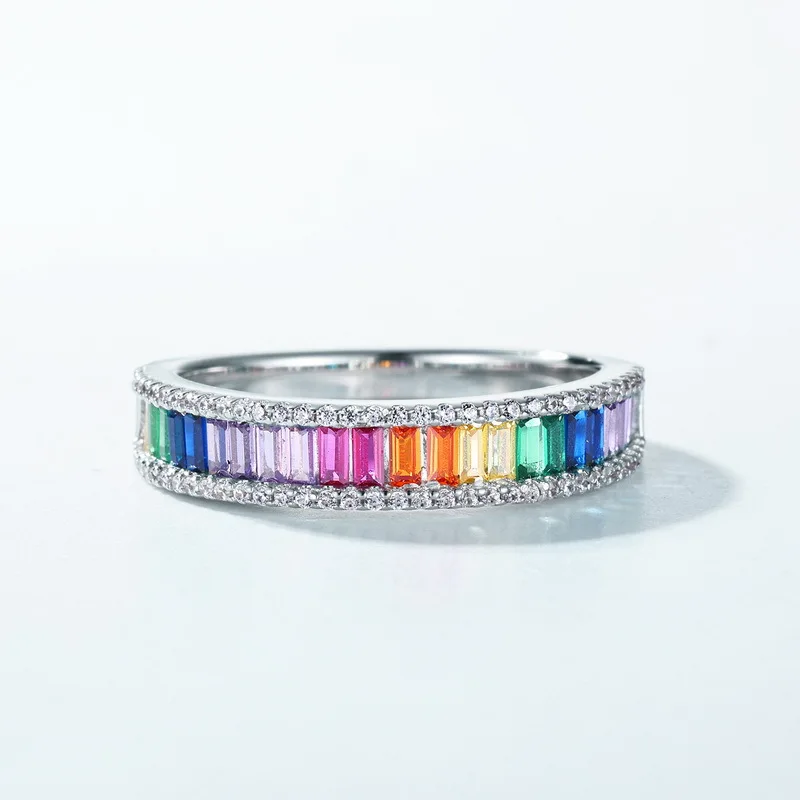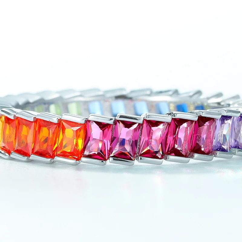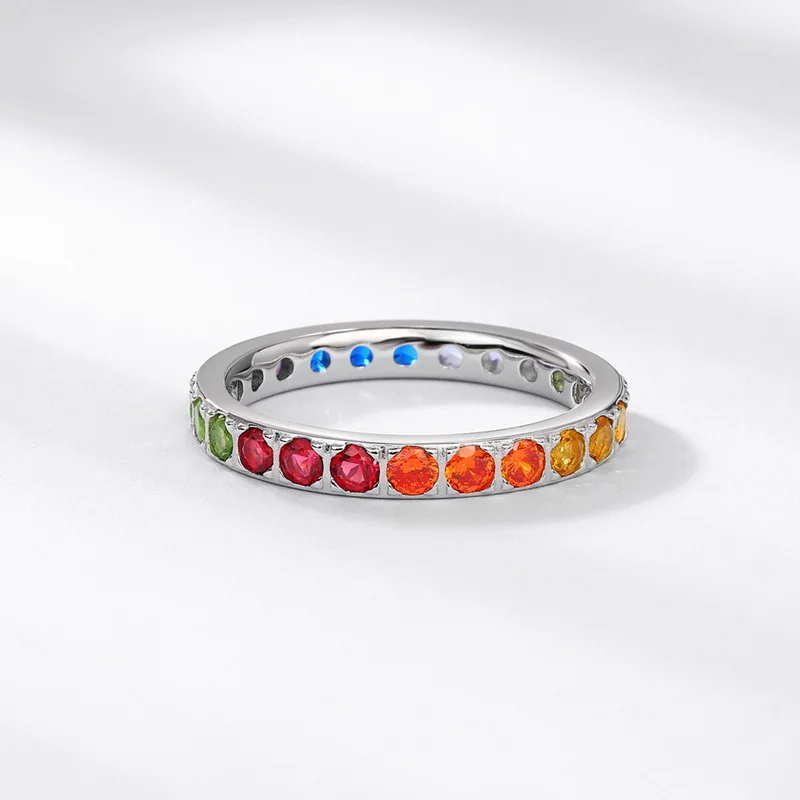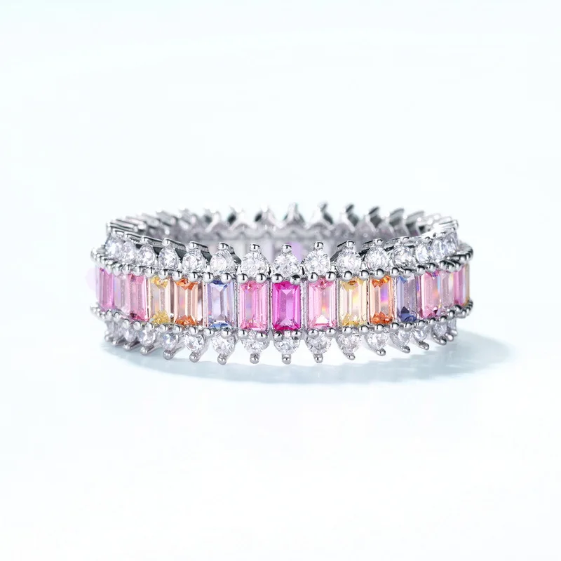 ALLNOEL Rainbow Band Ring for Woman Pure 925 Sterling Sliver 5A Zircon Eternity Fine Jewelry Colorful Engagement Birthday Gifts