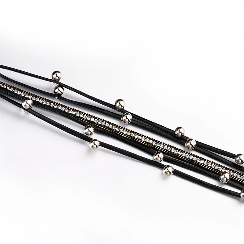ALLYES Metal Beads Charm Leather Bracelets for Women Men Fashion Crystal Chain Bohemian Multilayer Wrap Bracelet Female Jewelry
