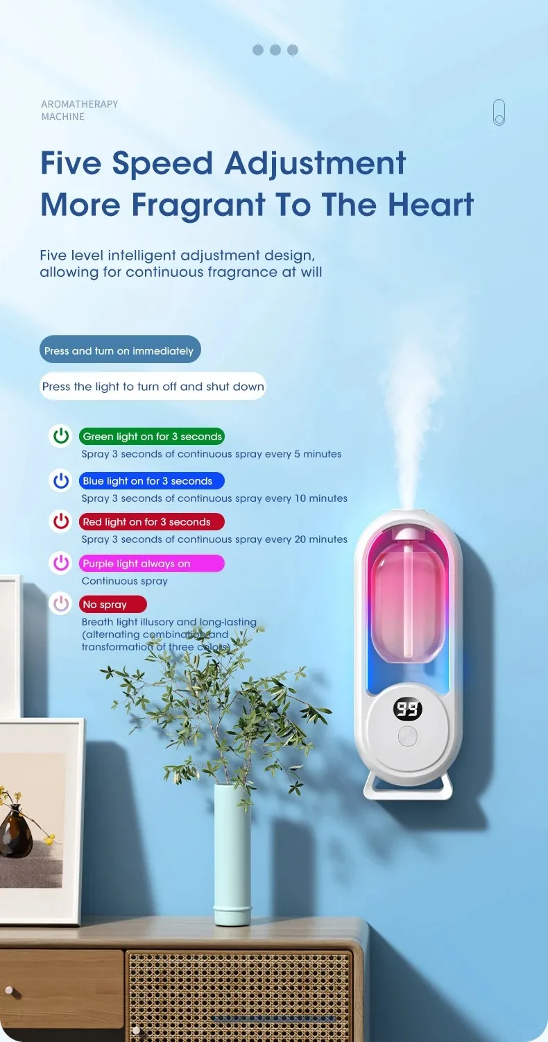 Automatic Nebulizer Essential Oil Diffuser Home Fragrance Machine Kitchen Toilet Deodorizer Perfume Scent Machine