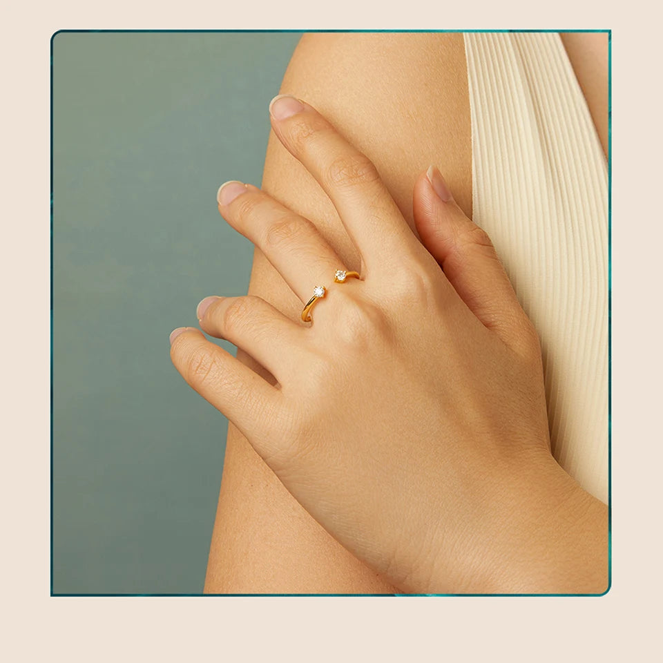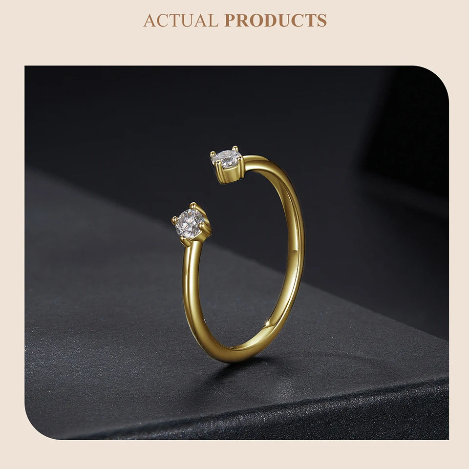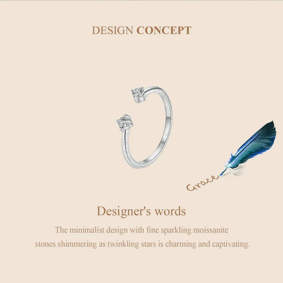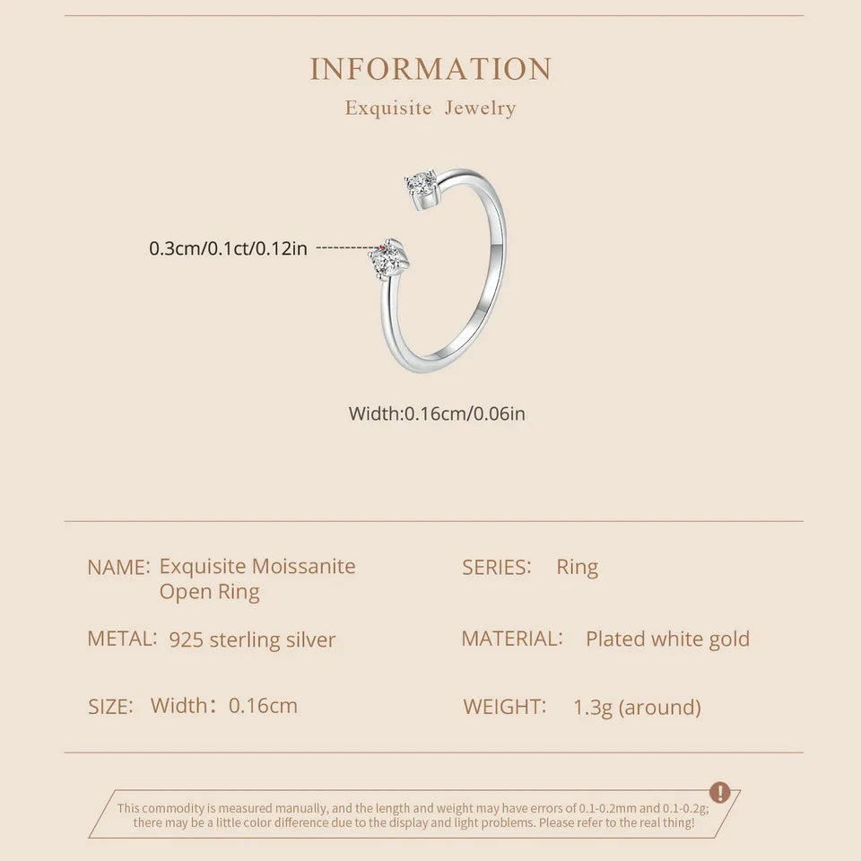 BAMOER Moissanite White Gold Plated Adjustable Ring 925 Sterling Silver Exquisite Open Ring for Women Fine Jewelry Gift