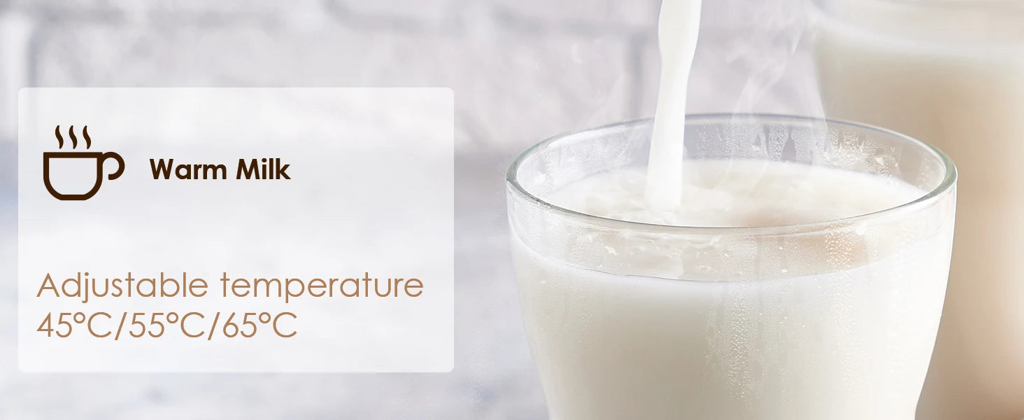 5. Safe Design: Our milk warmer is equipped with temperature control and automatically turn off which will automatically switches off when milk foam is ready. Food-grade and non-stick coating inner will not easy to burn the milk.