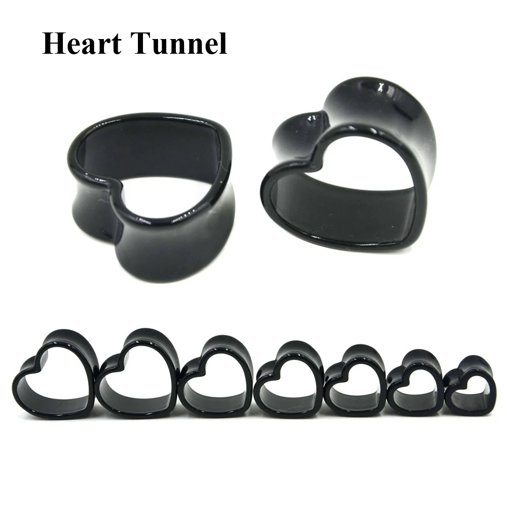 BOG-Pair Black Heart Ear Tunnel Gauge Acrylic Ear Spiral Plugs Ear Taper Stretchers Gauge Expander Saddle Ear Plugs 4-25mm