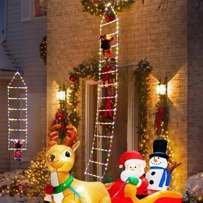 Christmas Decorations LED Ladder Lights with Climbing Santa Claus, Christmas Decor Light for Home Holiday Wall Window Xmas Decor