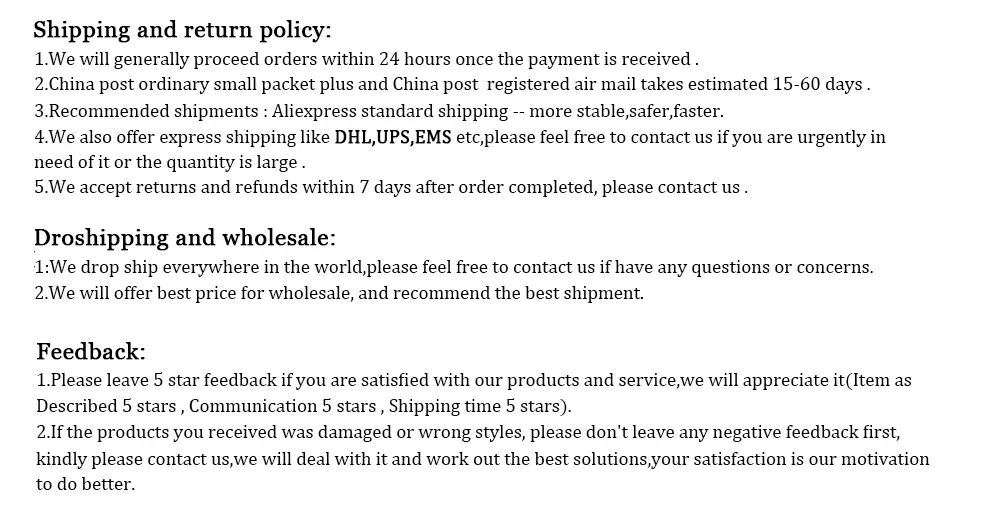1. We support dropshipping, any commercial documents are not included in the package, please order it and we will arrange the shipment within 0-72 hours. Shipping information can be tracked.