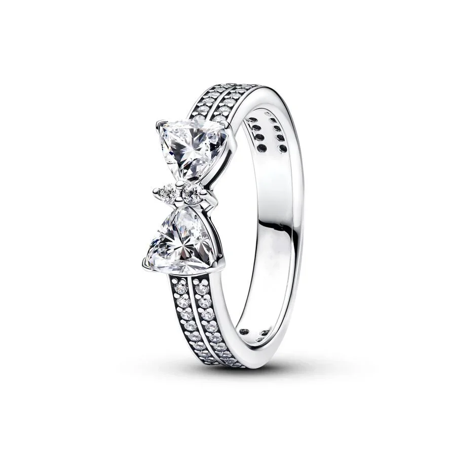 Disney Classic Shiny Princess Crown Ring Red Bow Heart-Shaped Ring Suitable For Wedding Party Female Original Jewelry DIY Gift
