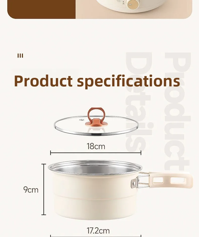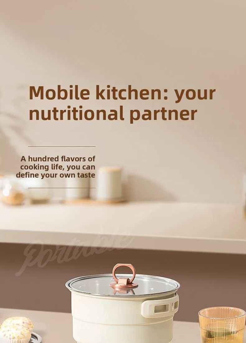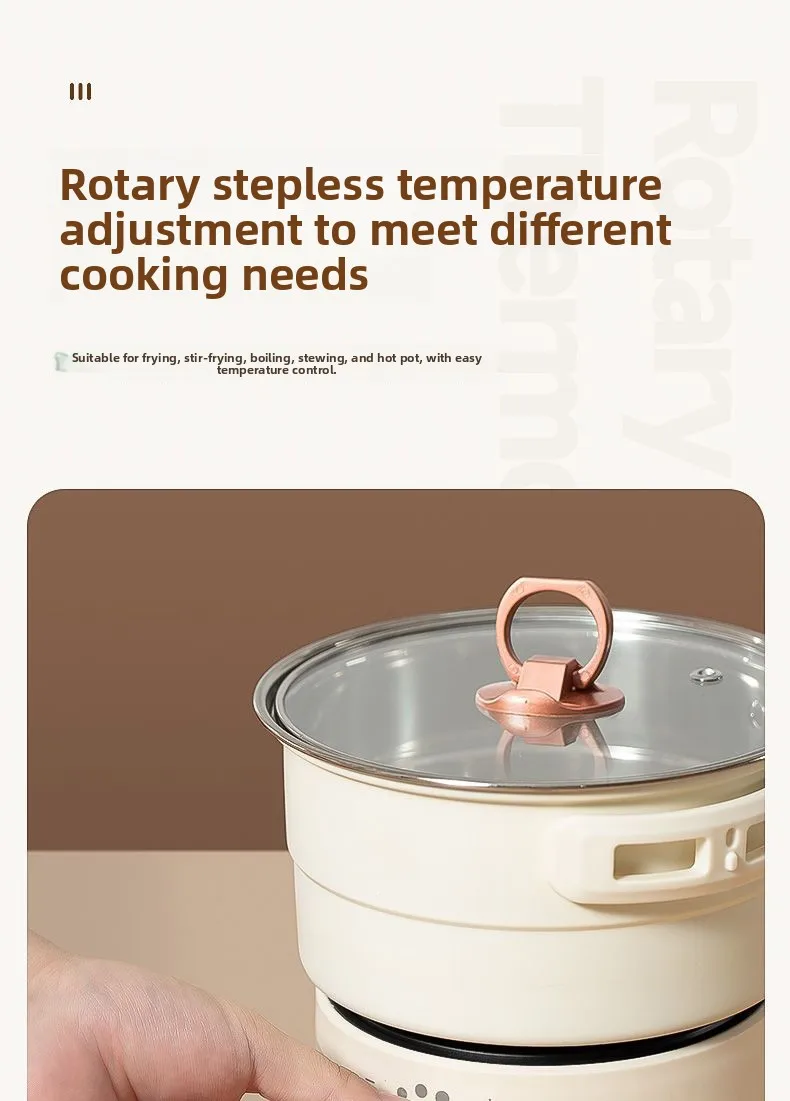 Electric Cooker 110V/220V Cooking Pot Foldable Hotpot 1.6L Portable Multi cookers Split Type Rice Cooker Frying Pan Home Travel