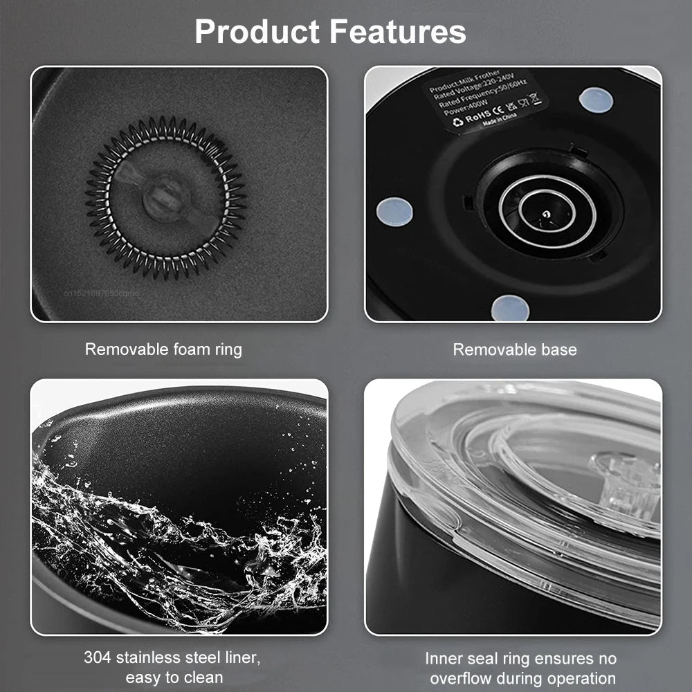 【Easy Cleaning】Hot & cold froth maker is constructed with scratch-resistant material and non-stick coating interior, allows for easy maintenance and hygienic cleaning.