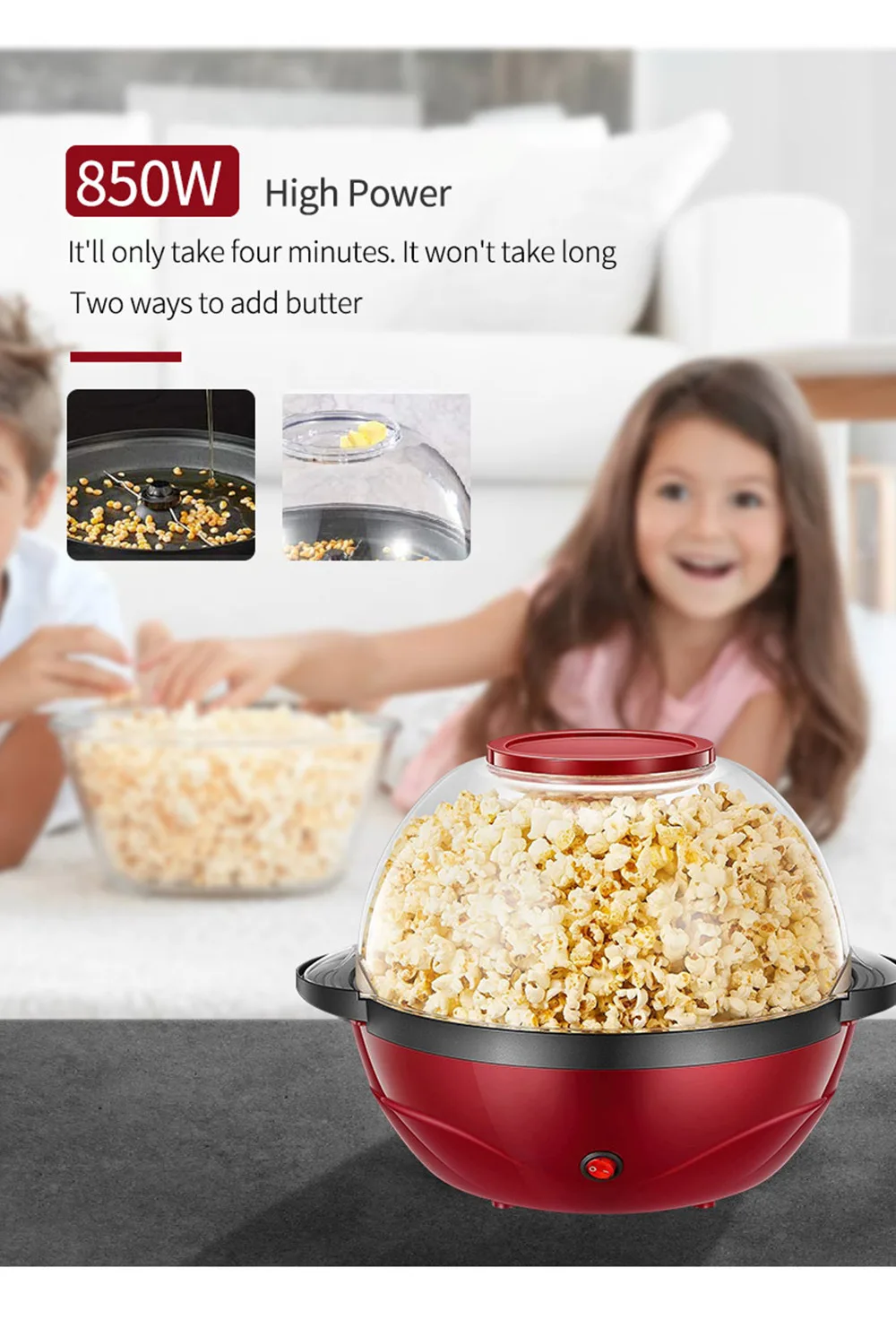 Electric Popcorn Maker 1PC850W Home Healthy Oil-free Children Homemade Snacks Corn Maker Fully Automatic Home Appliances Kitchen
