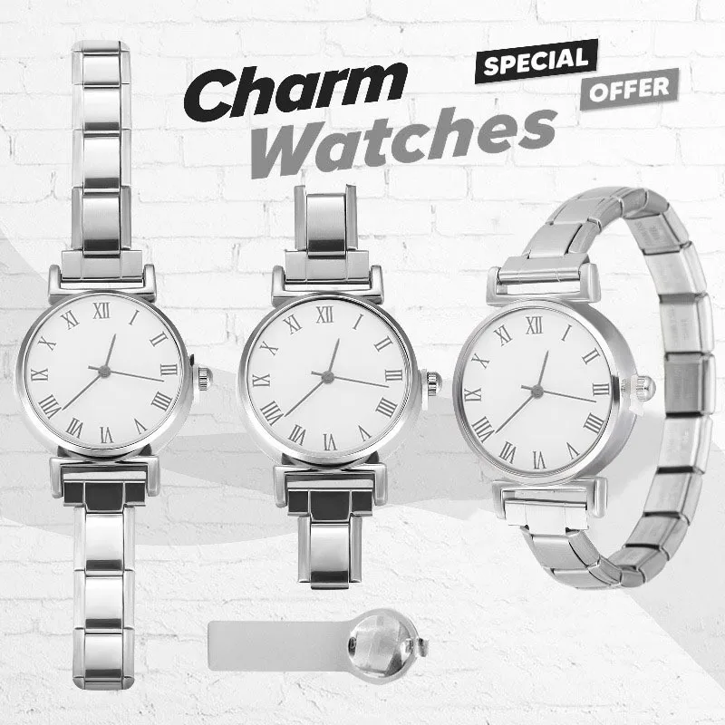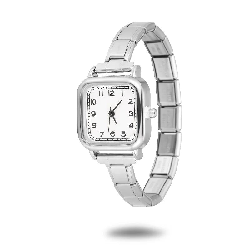Fashion Watch Women's DIY 9MM Width Italian Elastic Charm Stainless Watch Header Linker Bracelet Jewelry Birthday Gift