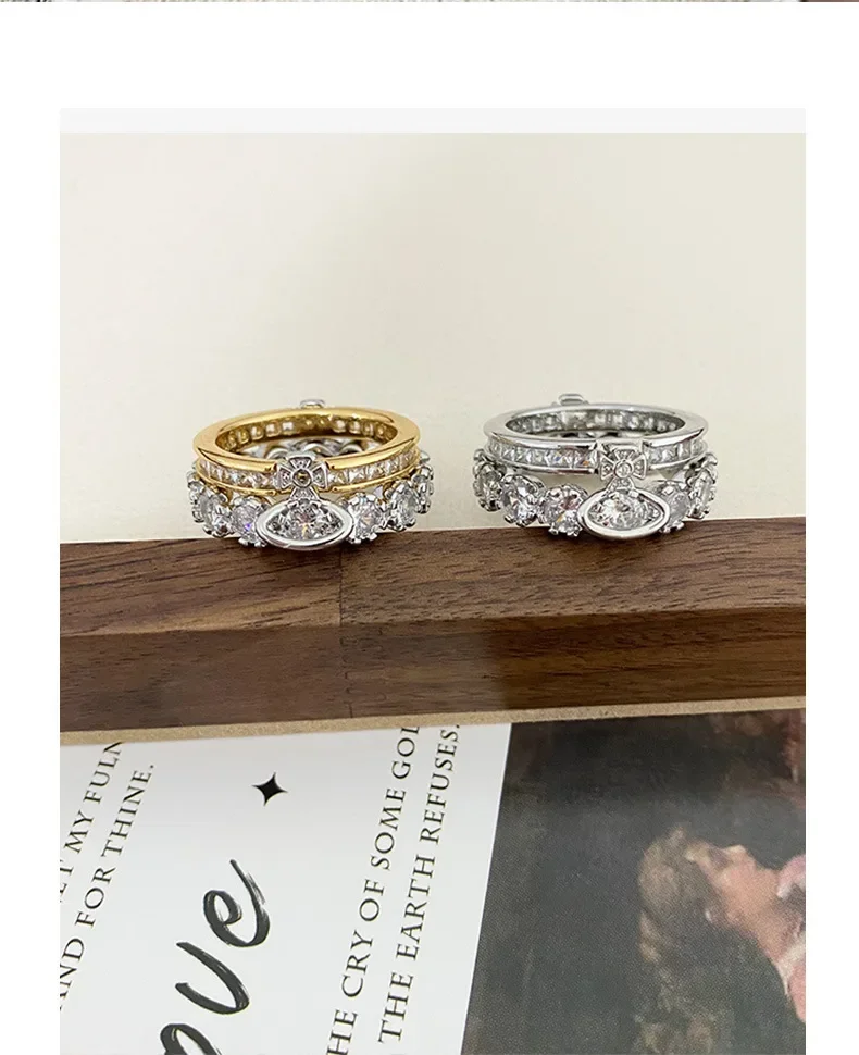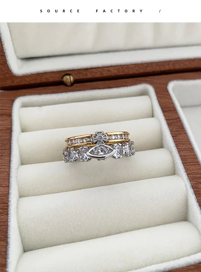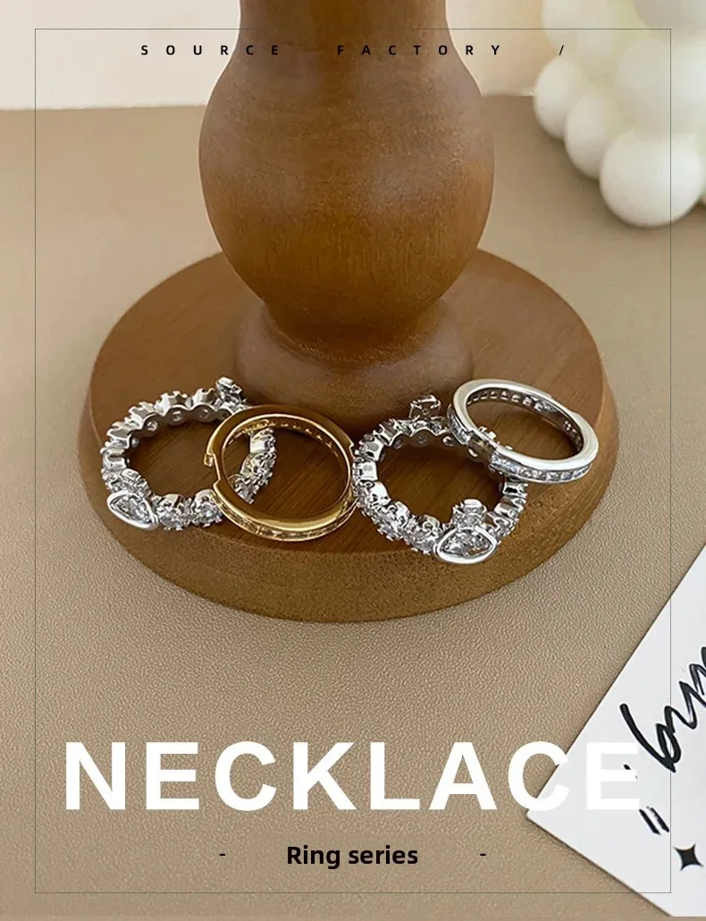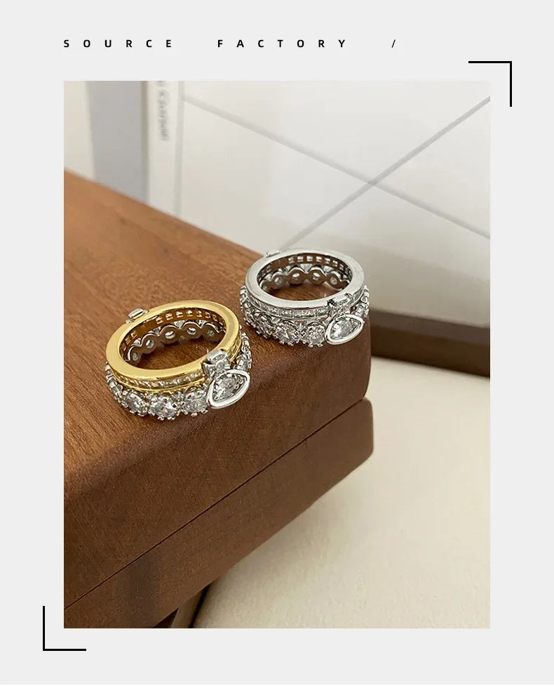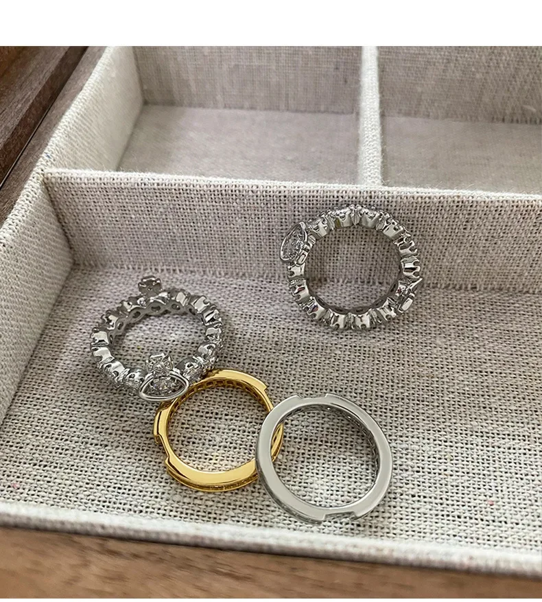 Fashionable Luxury Detachable Zircon Ring for Women High End Unique Style Two-Way Wearable Off-White Queen Design Jewelry
