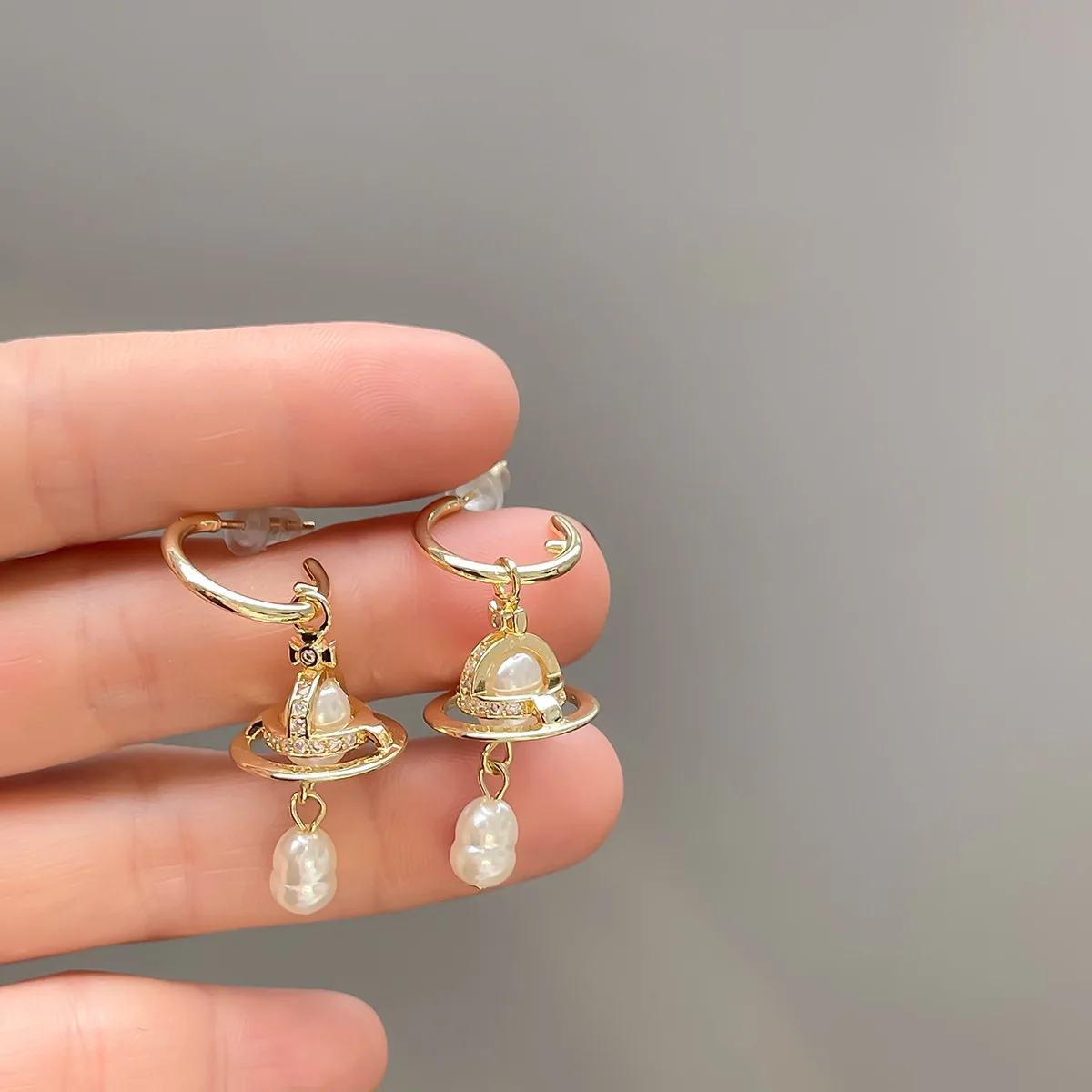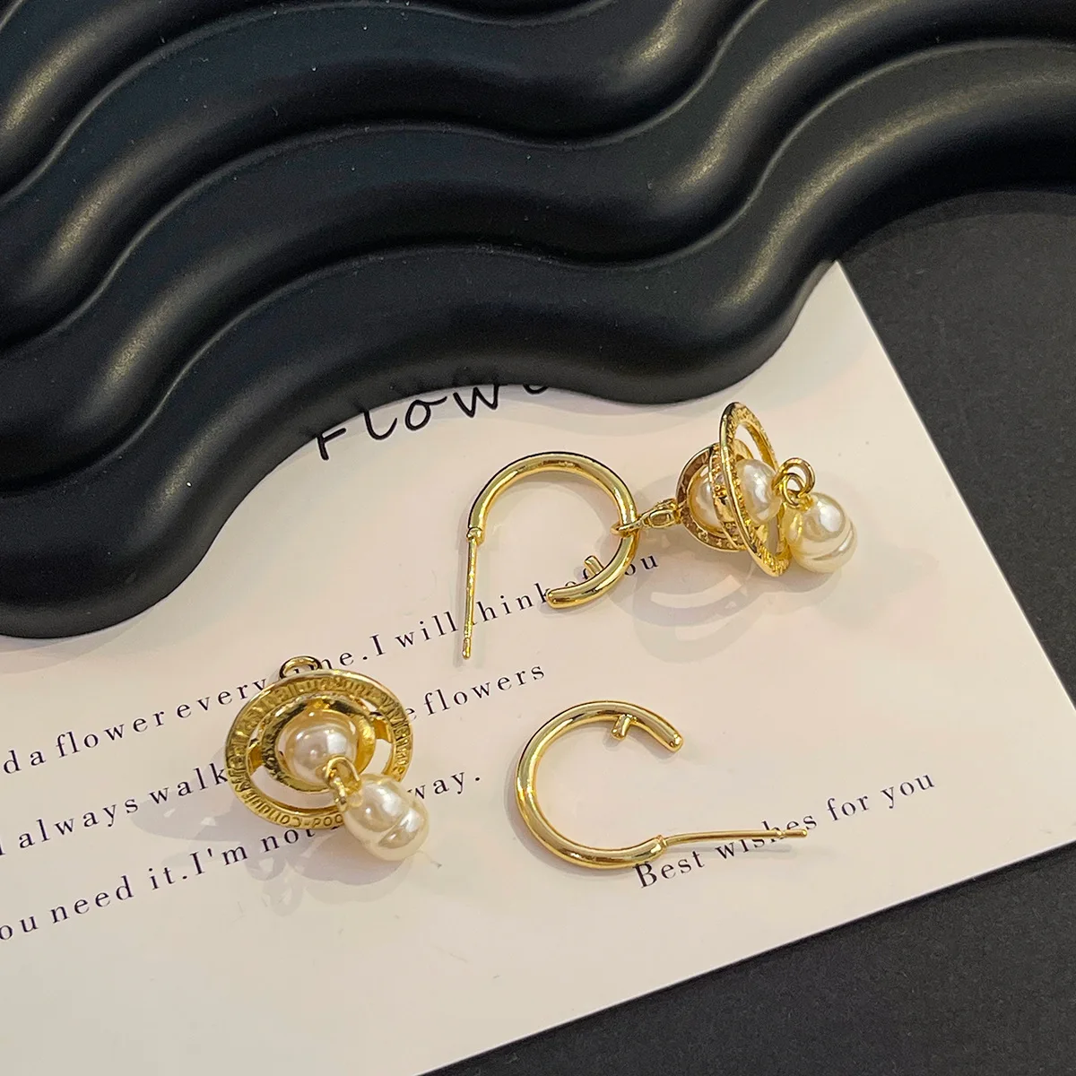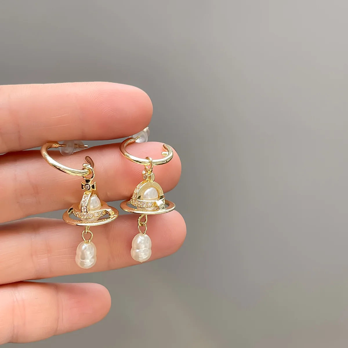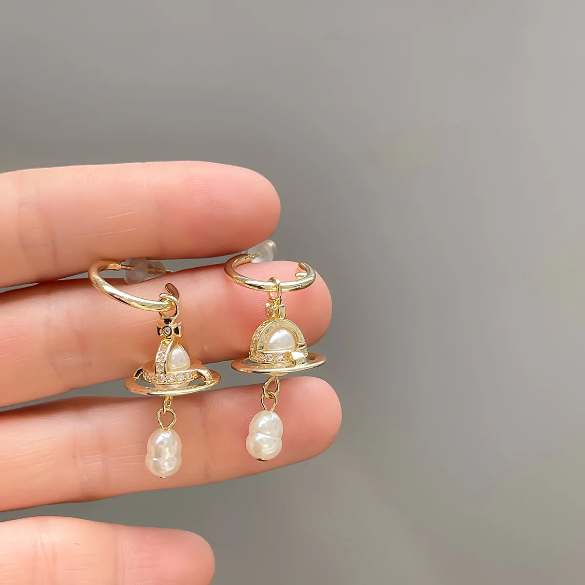 French Luxurious Personality Design Earrings Sweet Cool Style Women's Imitation Pearl Saturn Ear Jewelry High-End Feeling