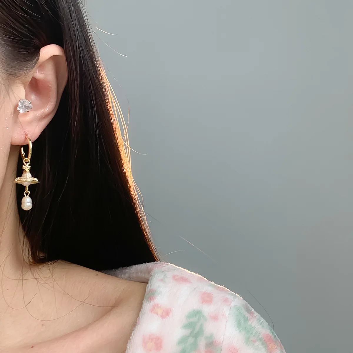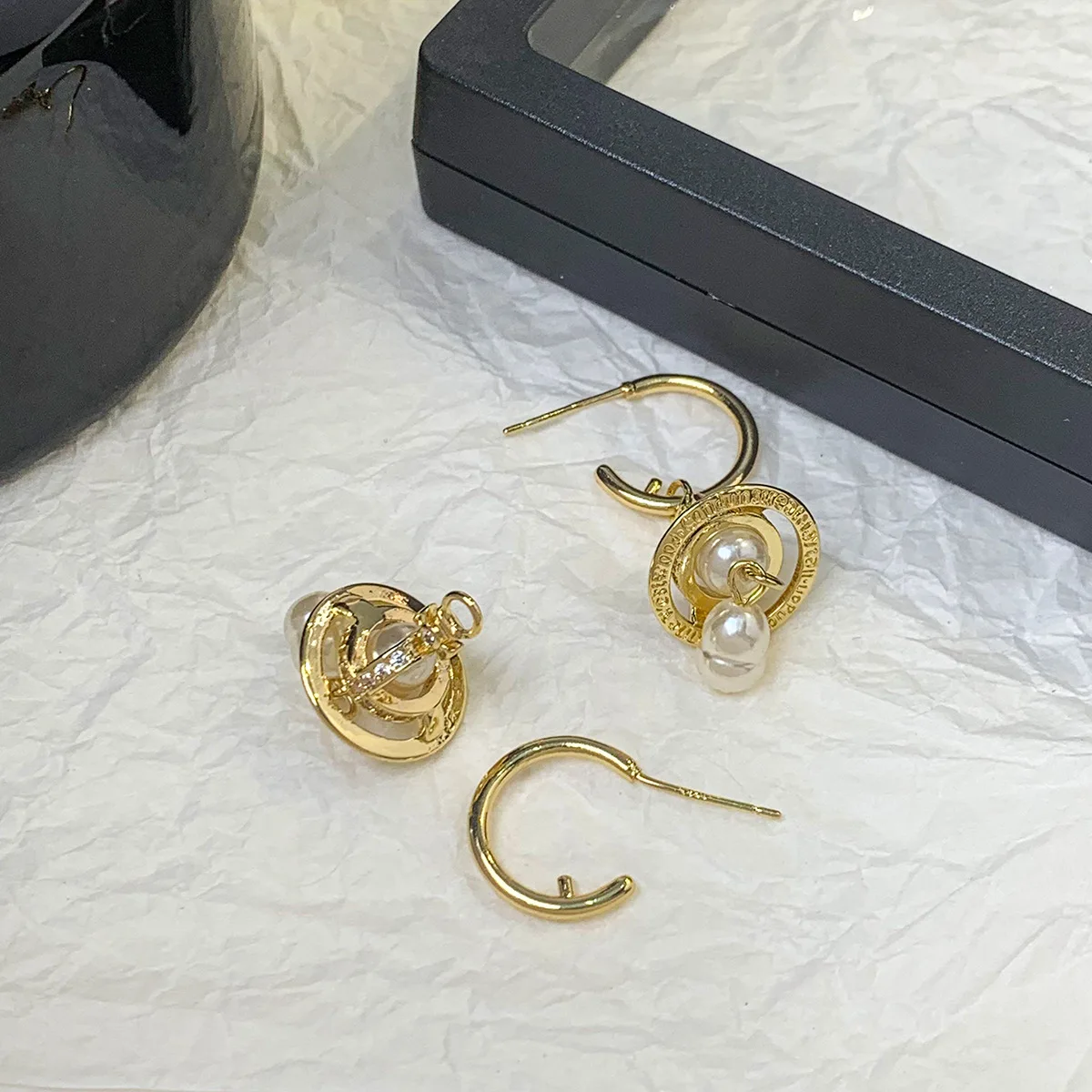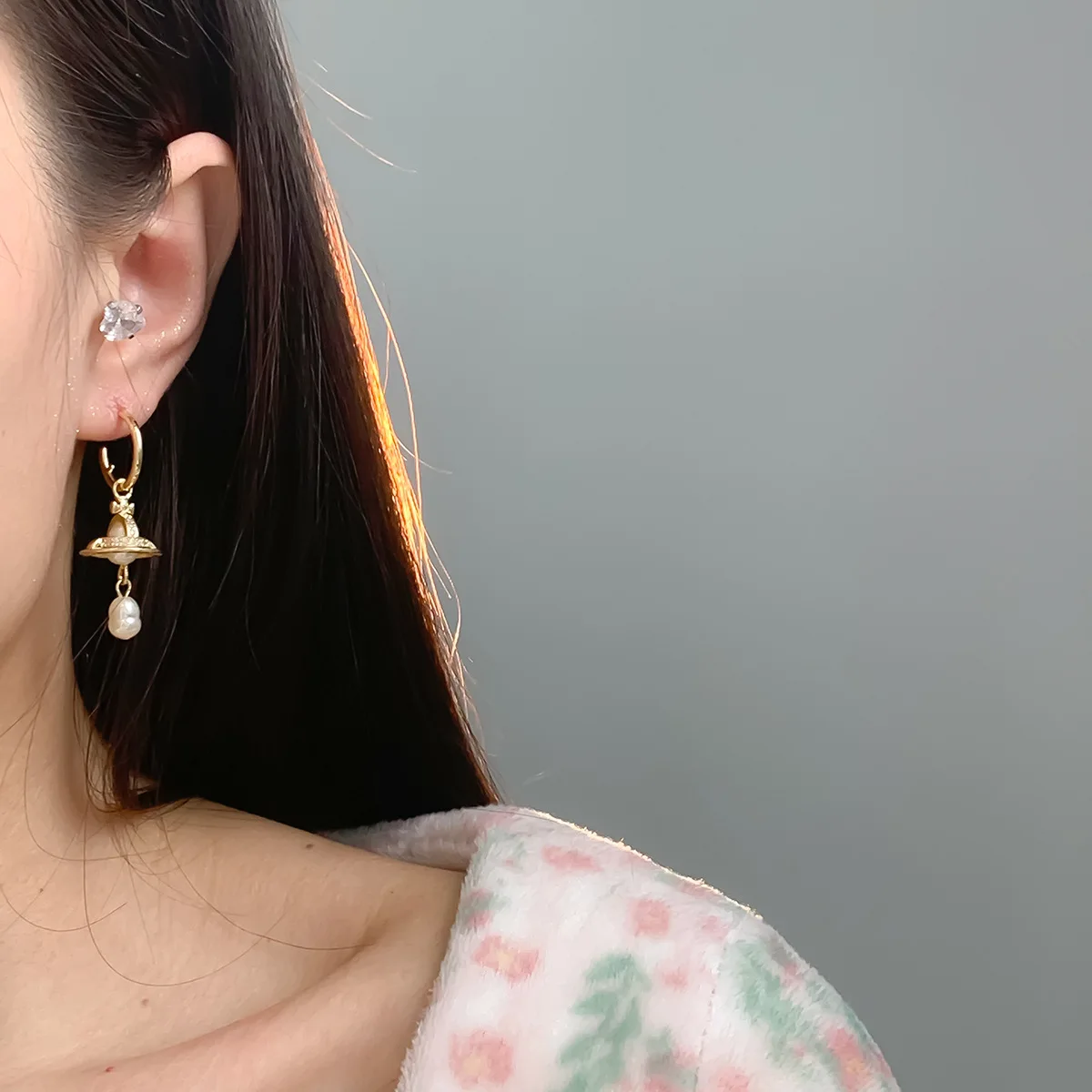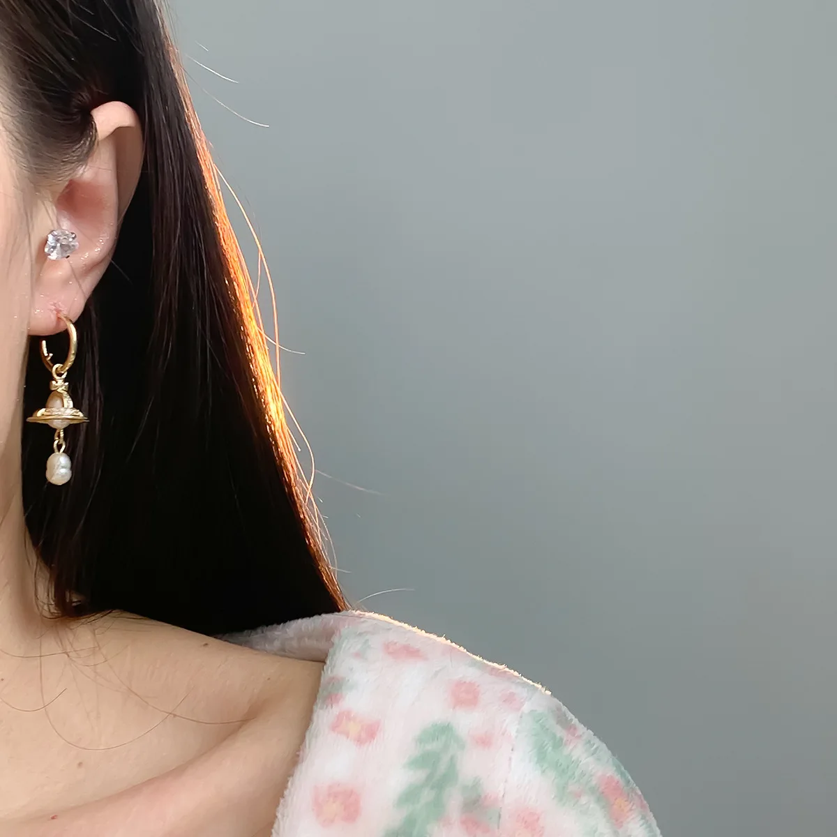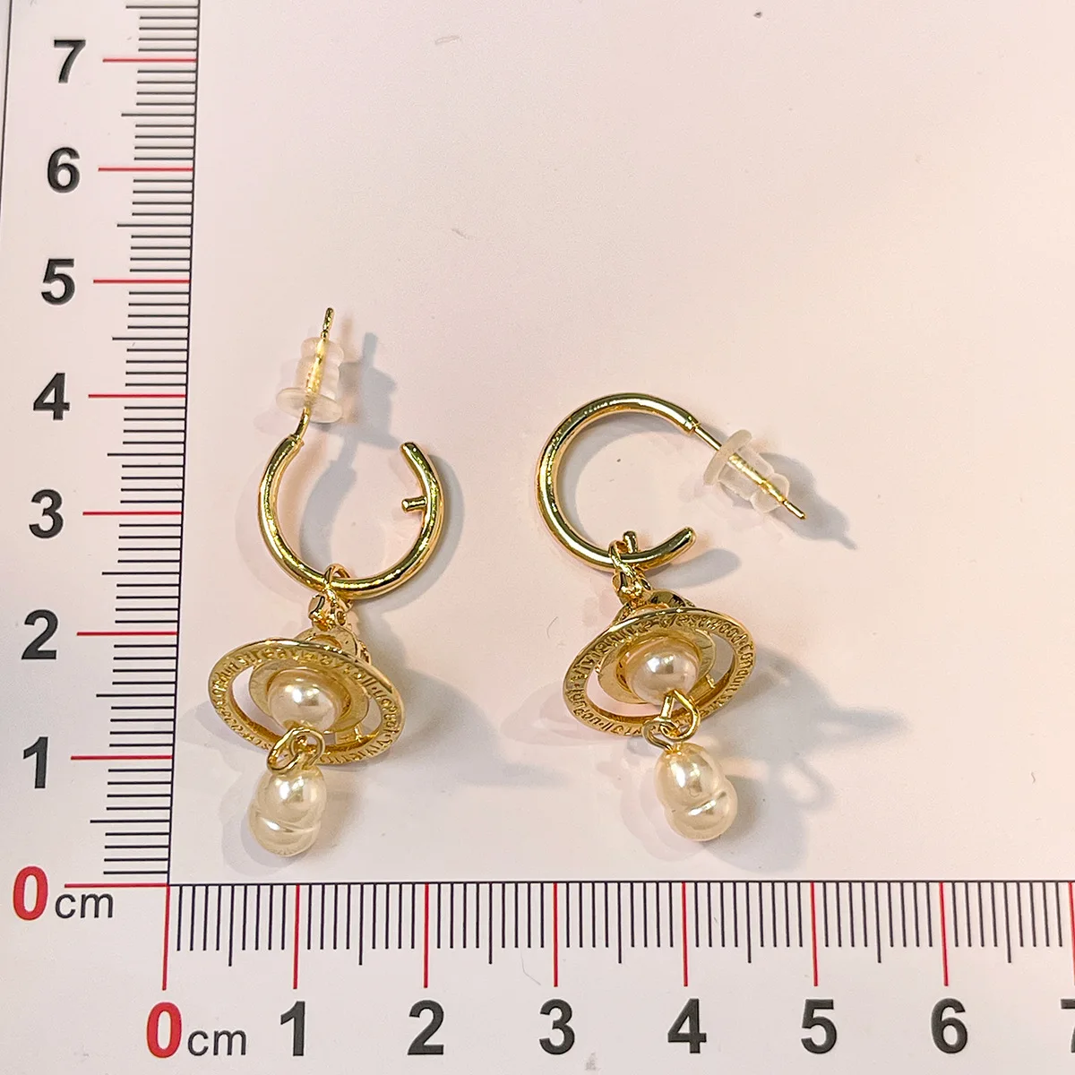 French Luxurious Personality Design Earrings Sweet Cool Style Women's Imitation Pearl Saturn Ear Jewelry High-End Feeling