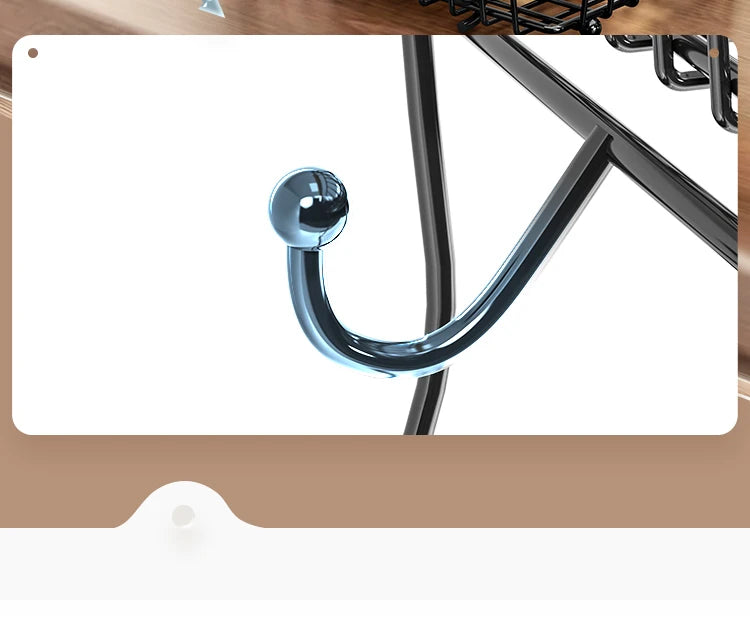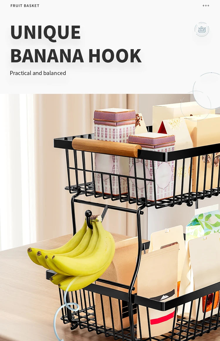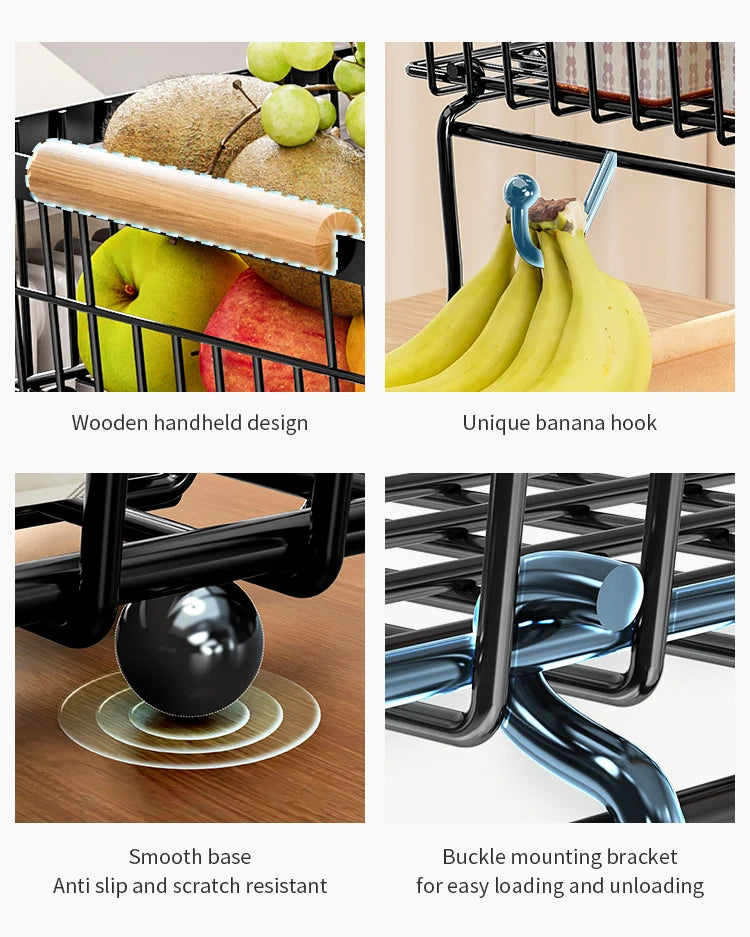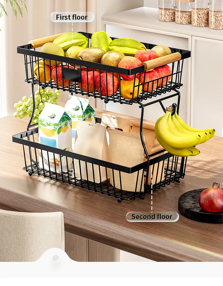 fruit basket vegetable basket,Metal storage basket with hook and wooden handle,Stackable and removable kitchen storage rack