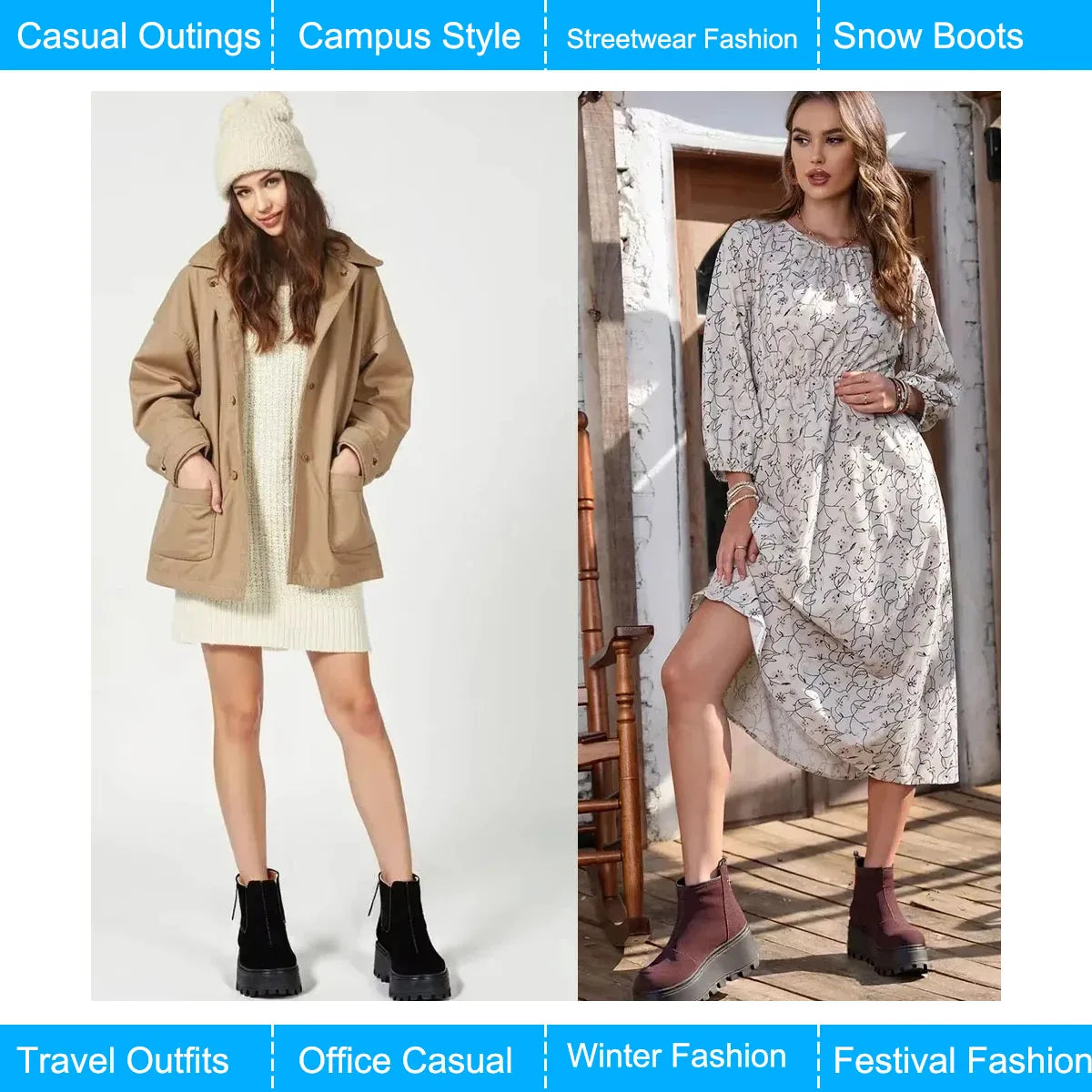 Fujin 7cm Suede Leather Snow Shoes Ankle Booties Platform Winter Boots Women Comfortable Non Slip Chelsea Boots Chunky Heel