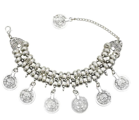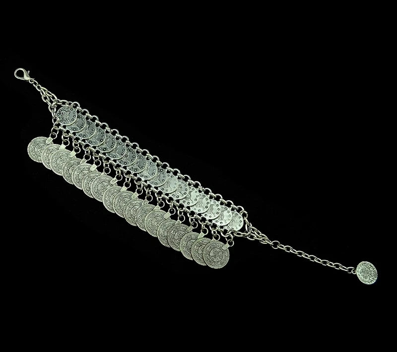Gypsy Bohemian Coin Bracelets for Women Metal Vintage Flower Statement Bracelets Festival Turkish Beach Jewelry Tribal Ethnic