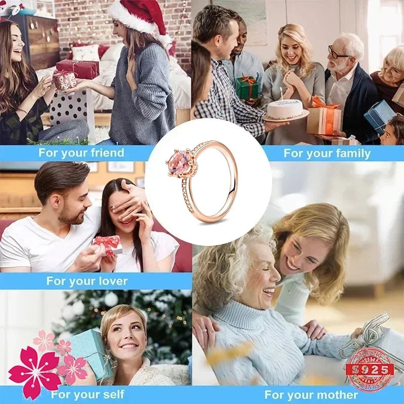 Hot selling 925 sterling silver rose gold ring high-quality luxury sparkling crystal ring women's jewelry exquisite holiday gift