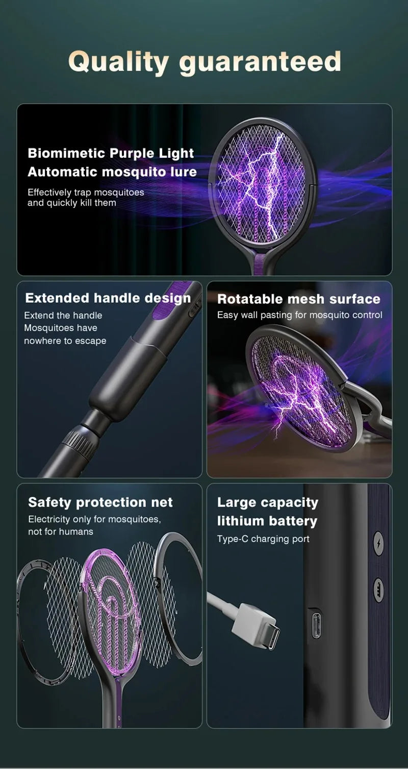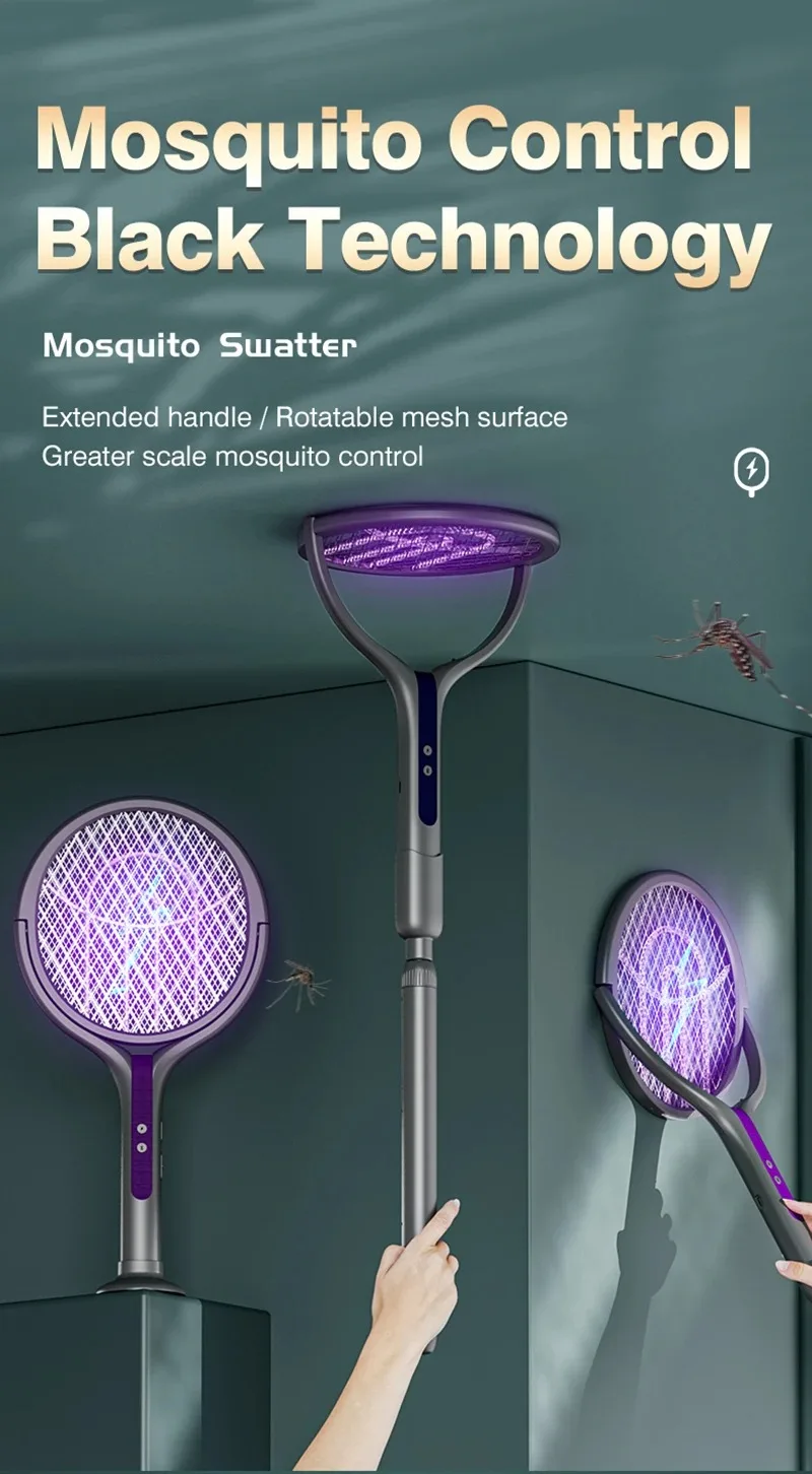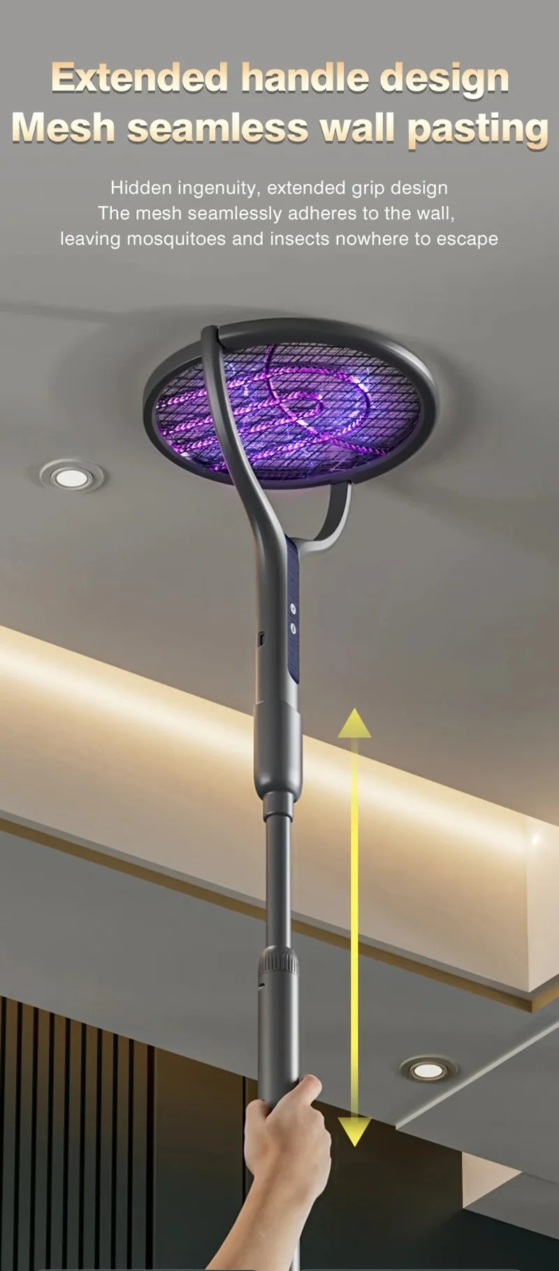 Intelligent Rechargeable Mosquito Swatter 2800V Electric Racket Extension Handle 5-Layer Protection