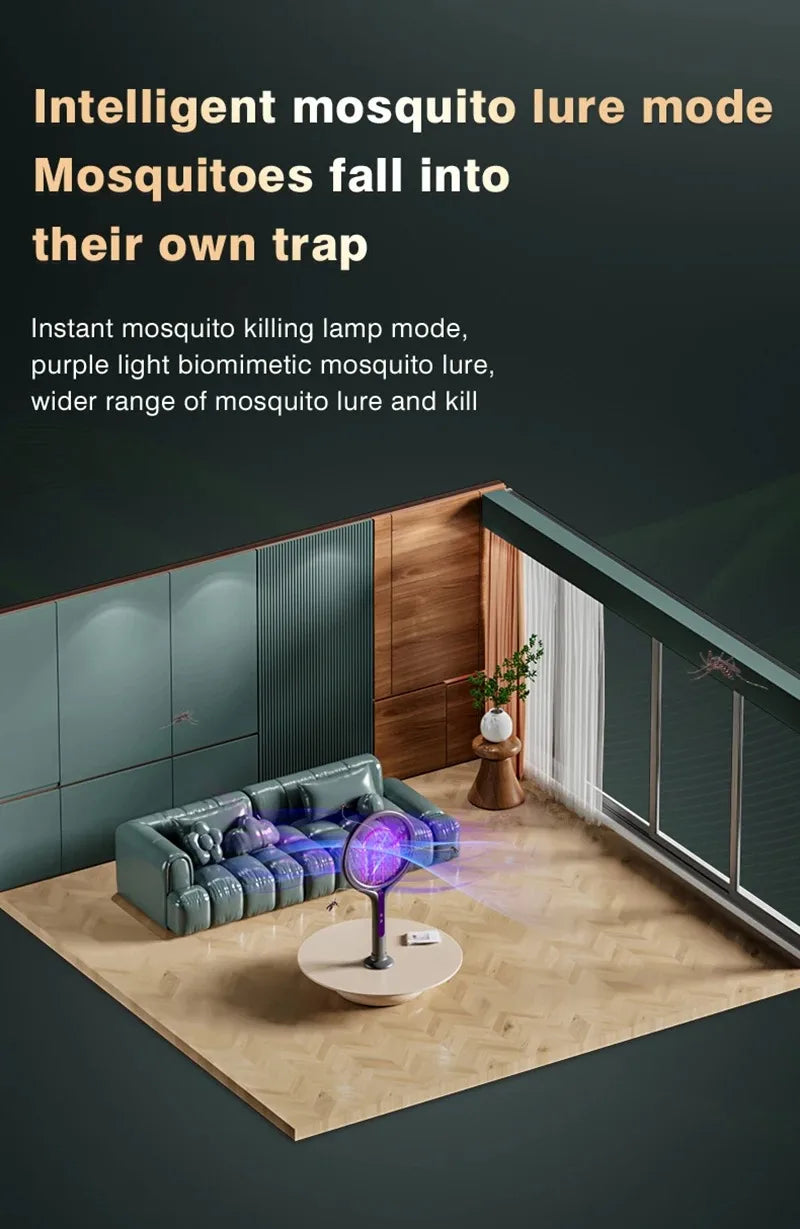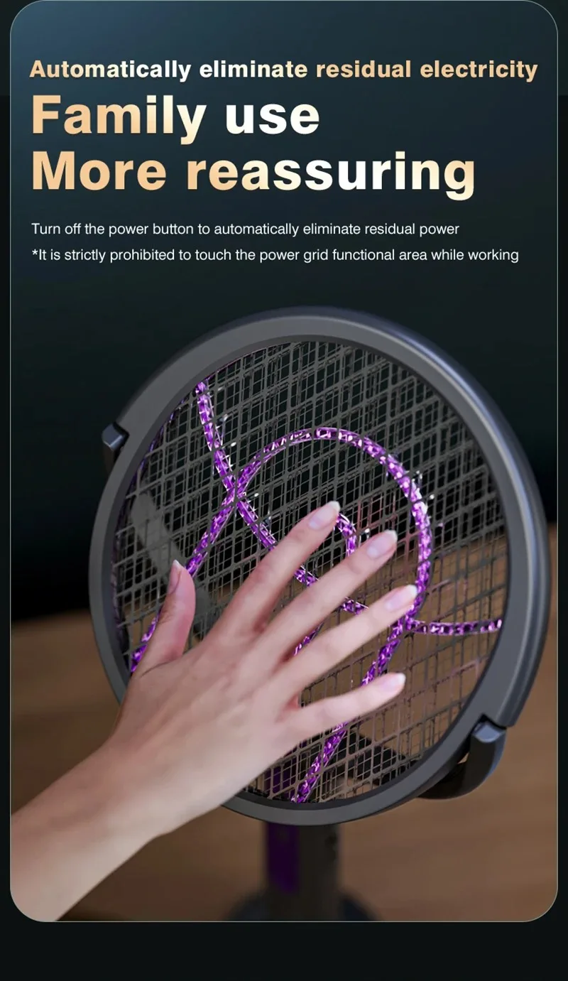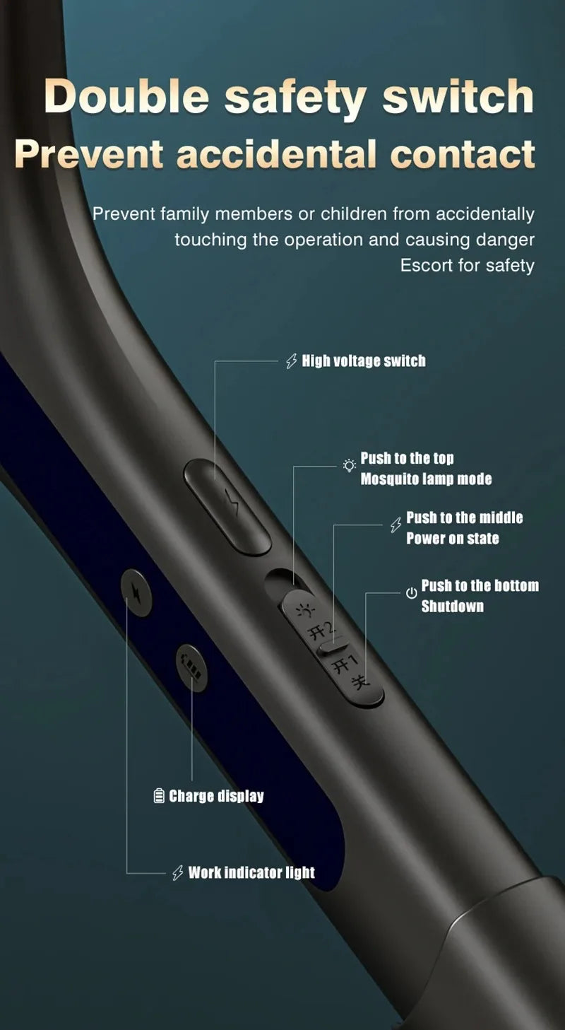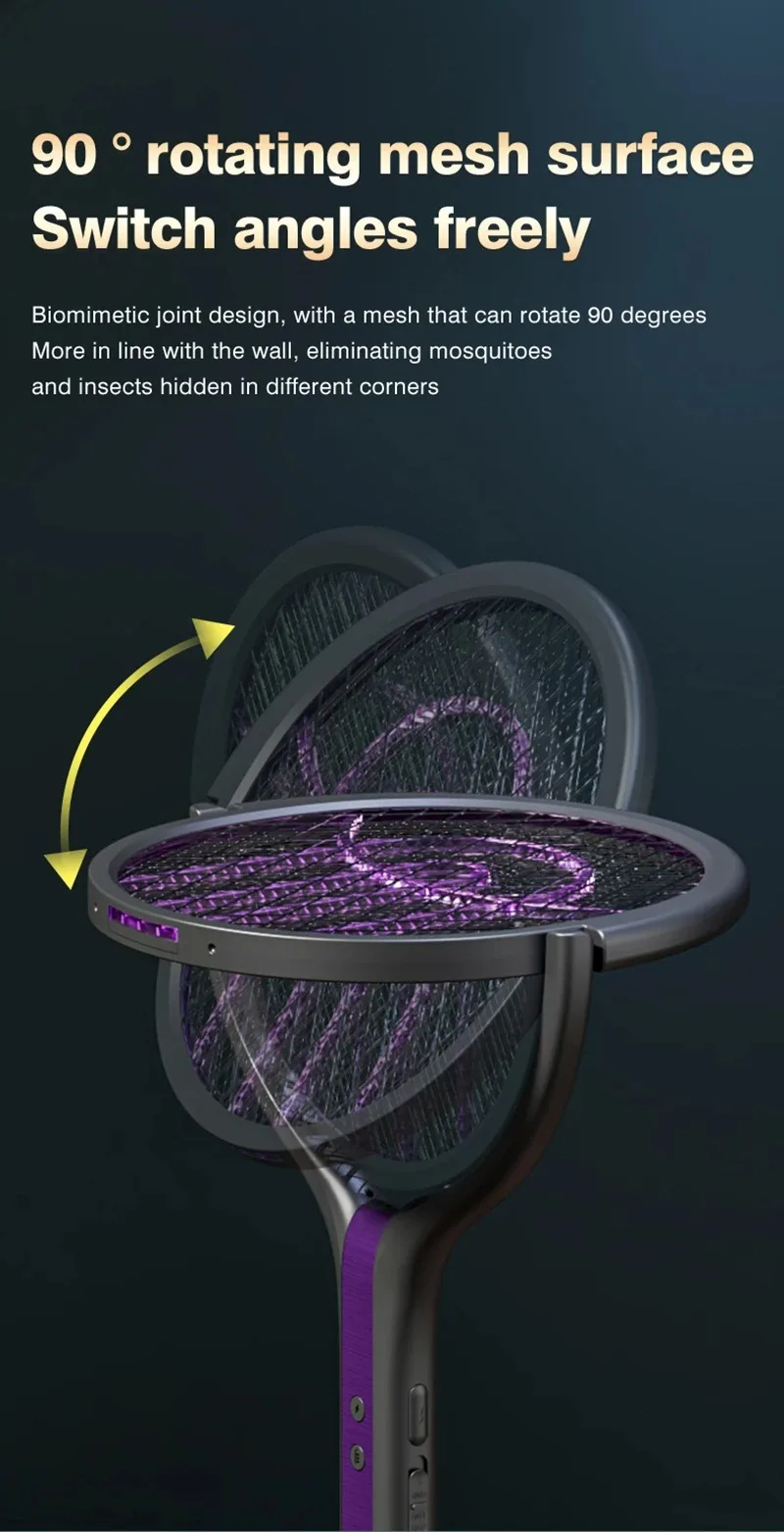 Intelligent Rechargeable Mosquito Swatter 2800V Electric Racket Extension Handle 5-Layer Protection