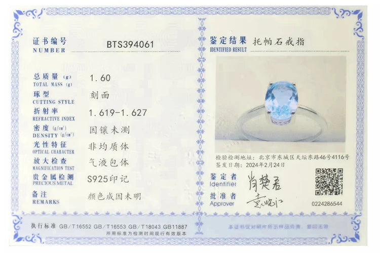 CertificateType: BEIJING CUG GEM TESTING CENTER