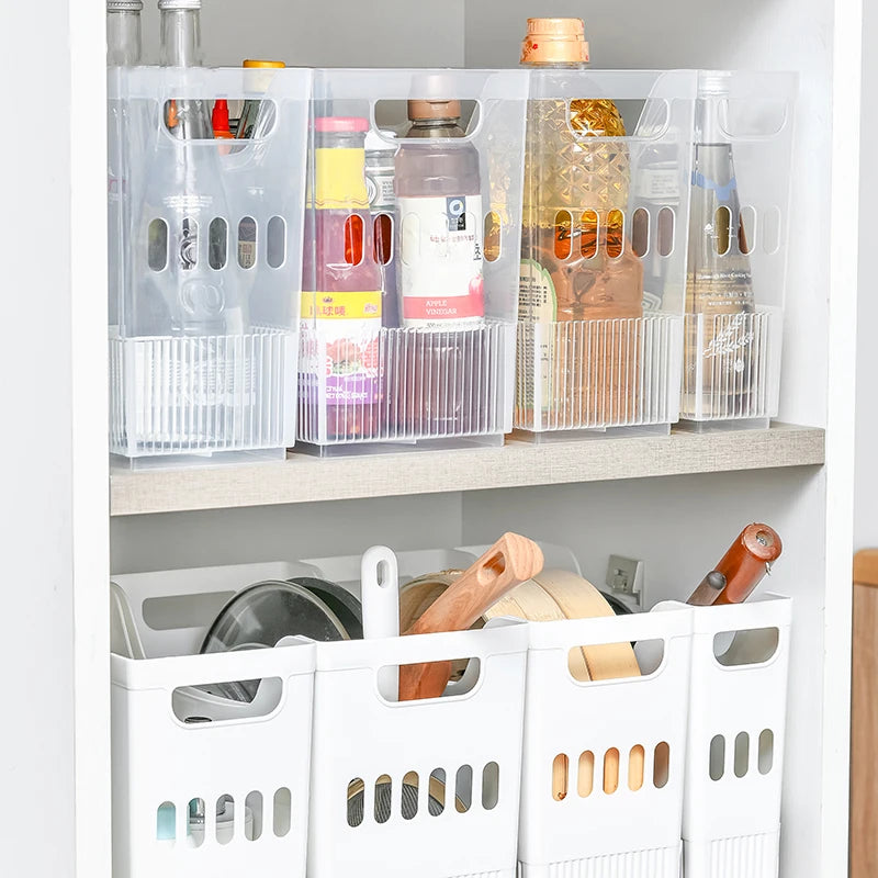 Portable and stackable - built-in easy to grip side handles for easy transport from one place. These plastic storage bins are perfect for pantry storage, storage or kitchen organizing. Designed with a pulley for easy movement, these transparent storage bins are perfect for anywhere in the home.